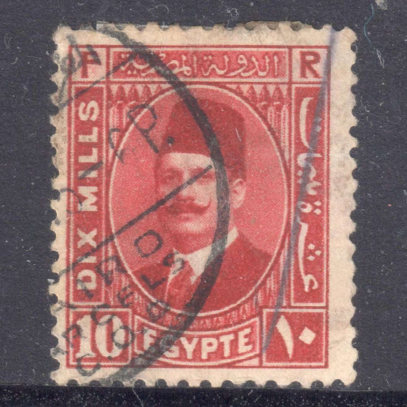 Egypt 1923 - 1924 10m Carmine Rose King Fuad I Stamp. A used & cancelled stamp. Please view images as all images are of the actual item.