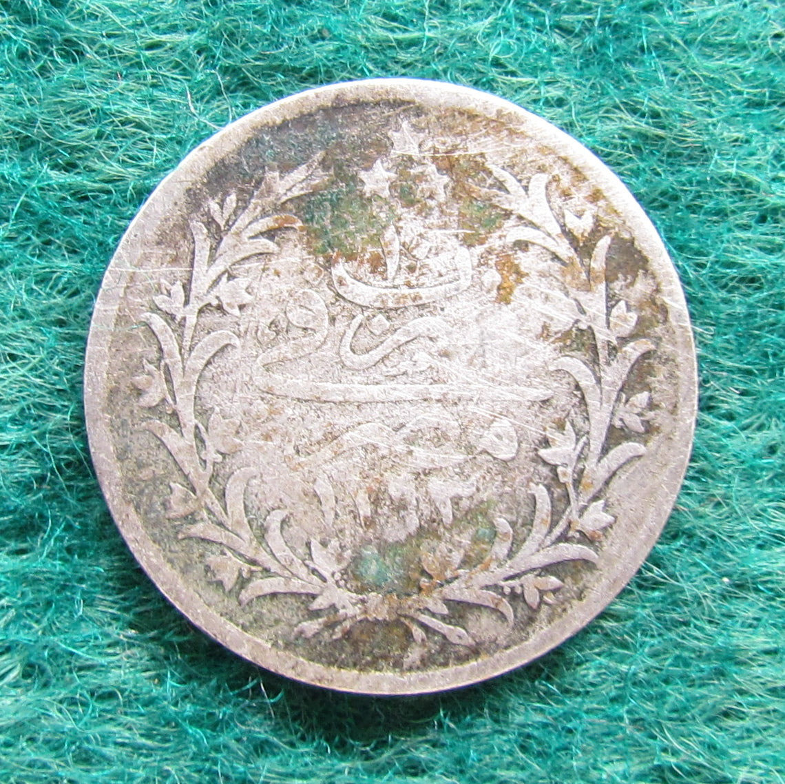 Egyptian 1886 1 Qirsh Silver Coin Abdul Hamid II 1293/10 - Circulated. A fair coin showing moderate to heavy wear and colouring consistent with its period in circulation as it was brought back to Australia with a returning soldier from WWI. Please view images as all images shown are of the actual item.