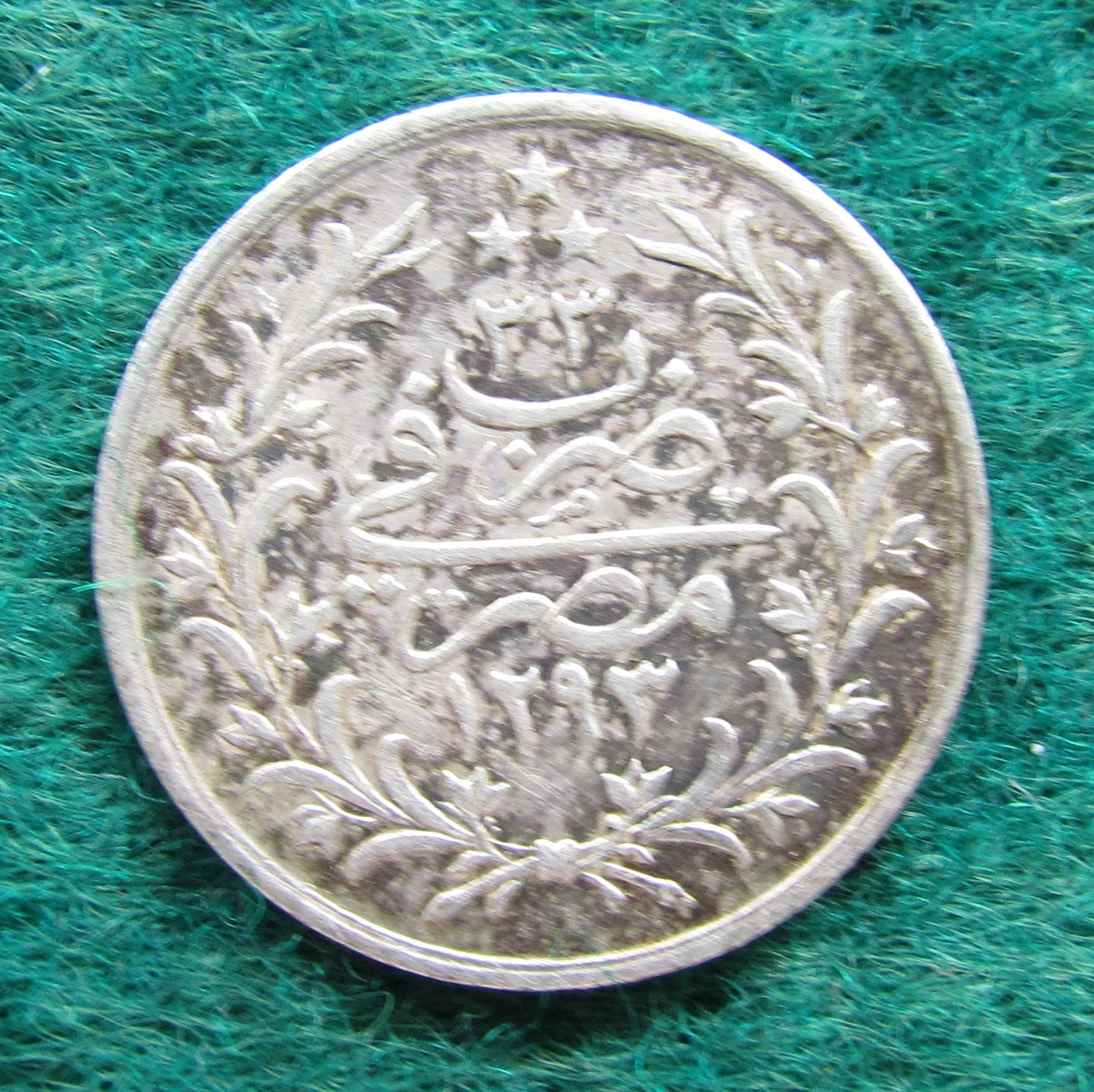 Egyptian 1913 2 Qirsh Silver Coin Mehmed V 1293/33 - Circulated. A fair to good coin showing moderate wear and colouring consistent with its period in circulation as it was brought back to Australia with a returning soldier from WWI. Please view images as all images shown are of the actual item.
