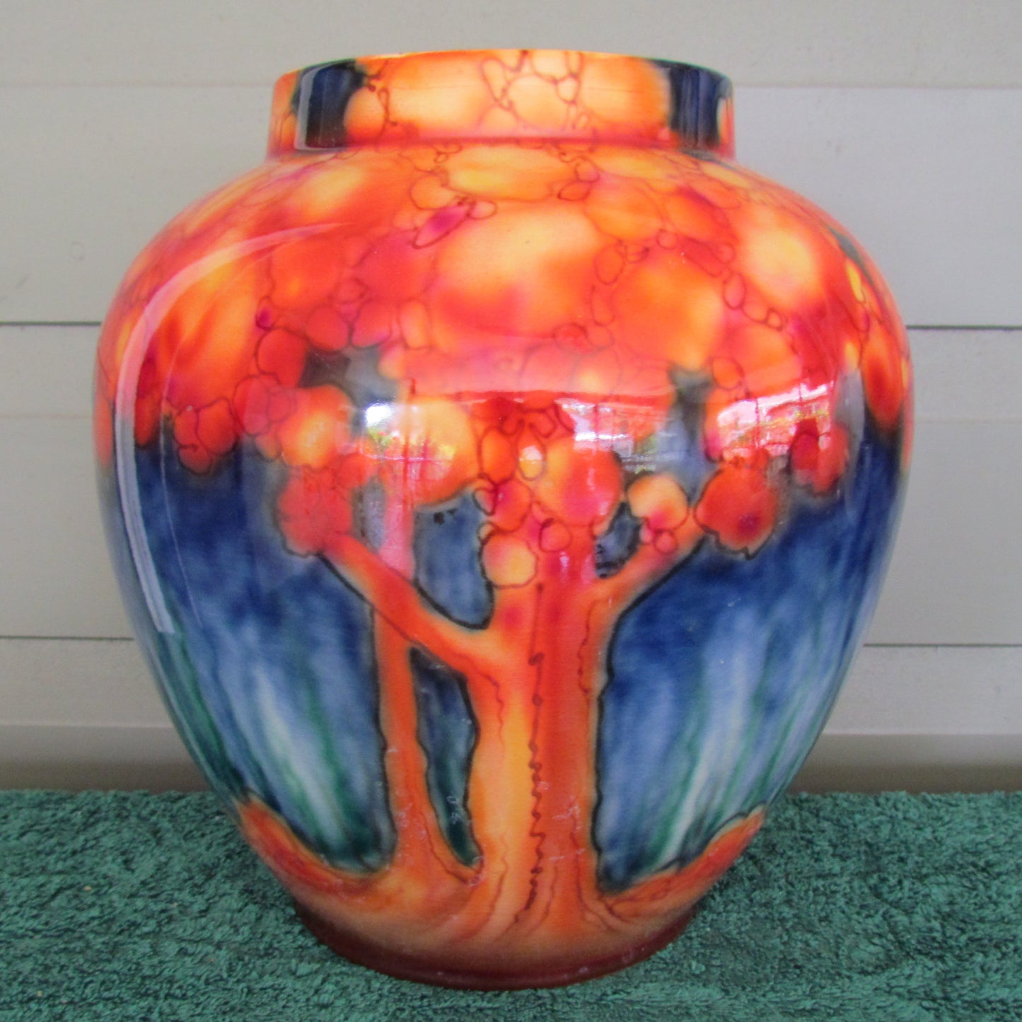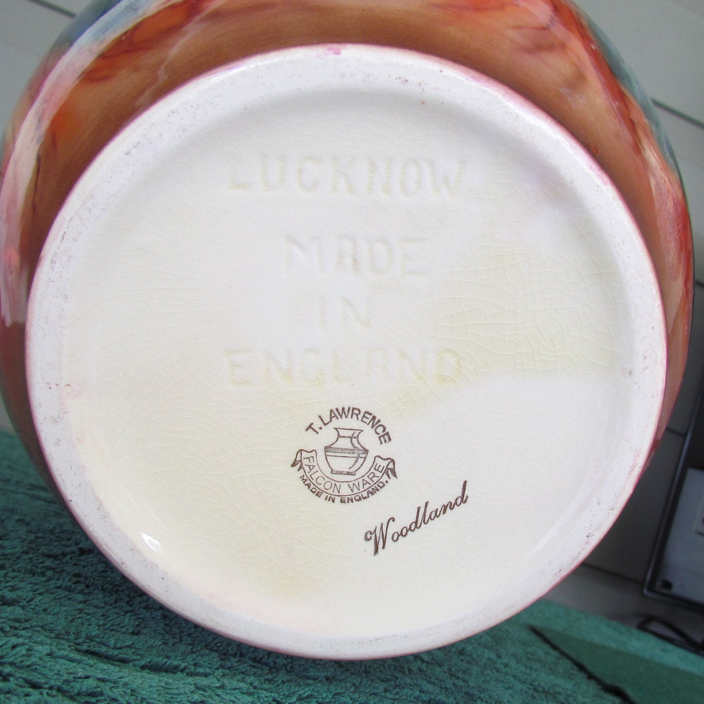 Falcon Ware by Thomas Lawrence Woodland Design Lucknow Shaped Vase. A fabulous scarce piece of Falcon Ware from the 1930's. It has a few light scratches to the body but there are no chips or repairs. Please view images as all images are of the actual item.