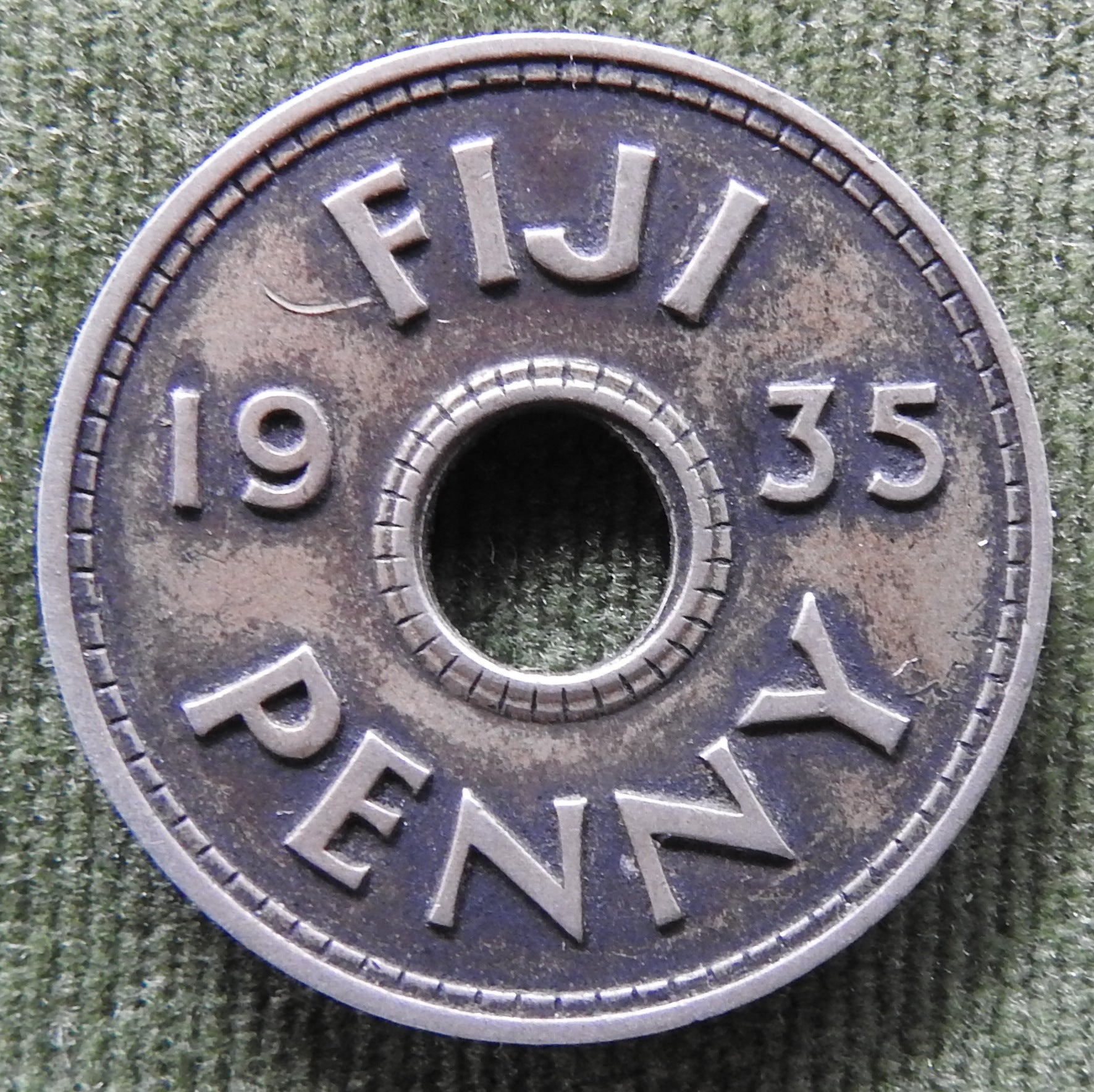 Fiji 1935 1 Penny Coin King George VI. A good coin with good detail consistent with intermediate to extended circulation. Please view images as all images are of the actual item.