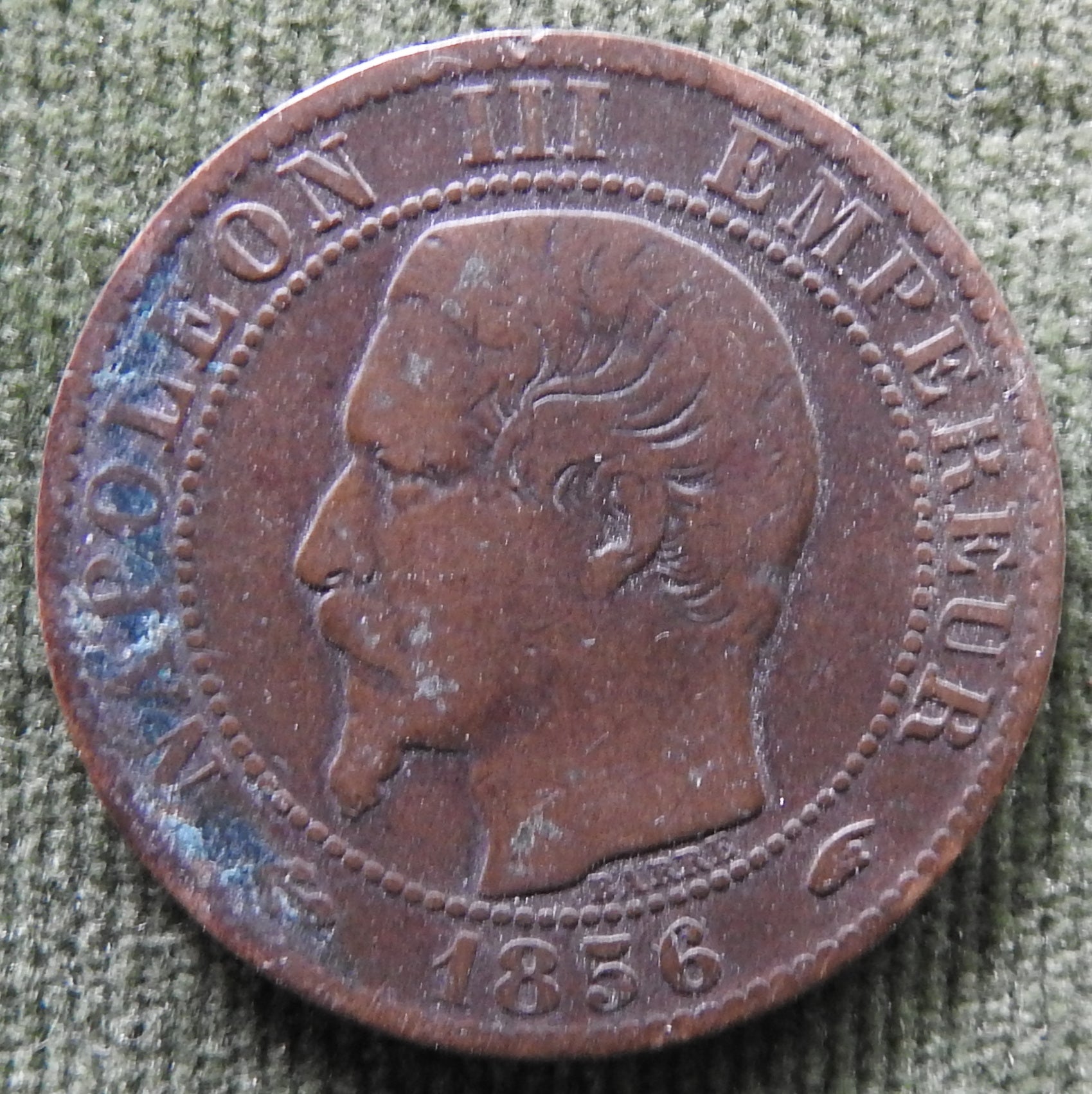 French 1856 A 5 Centimes Napoleon III Coin - Circulated. A good coin showing wear consistent with moderate to long term circulation and moderate handling, please view images. All images shown are of the actual item.