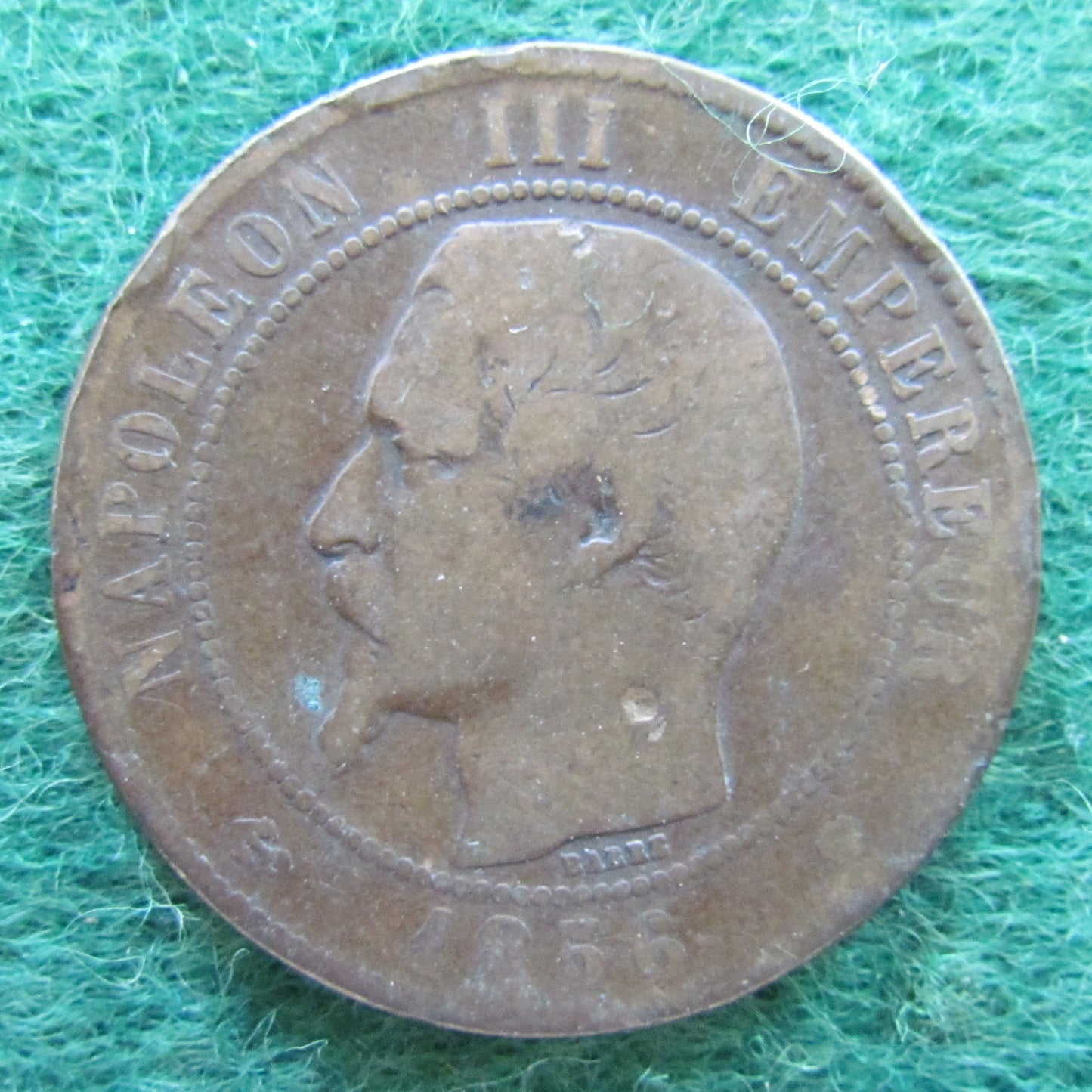 French 1856 MA 10 Centimes Napoleon III Coin - Circulated. A good coin showing wear consistent with long term circulation and moderate to heavy handling, please view images. All images shown are of the actual item.