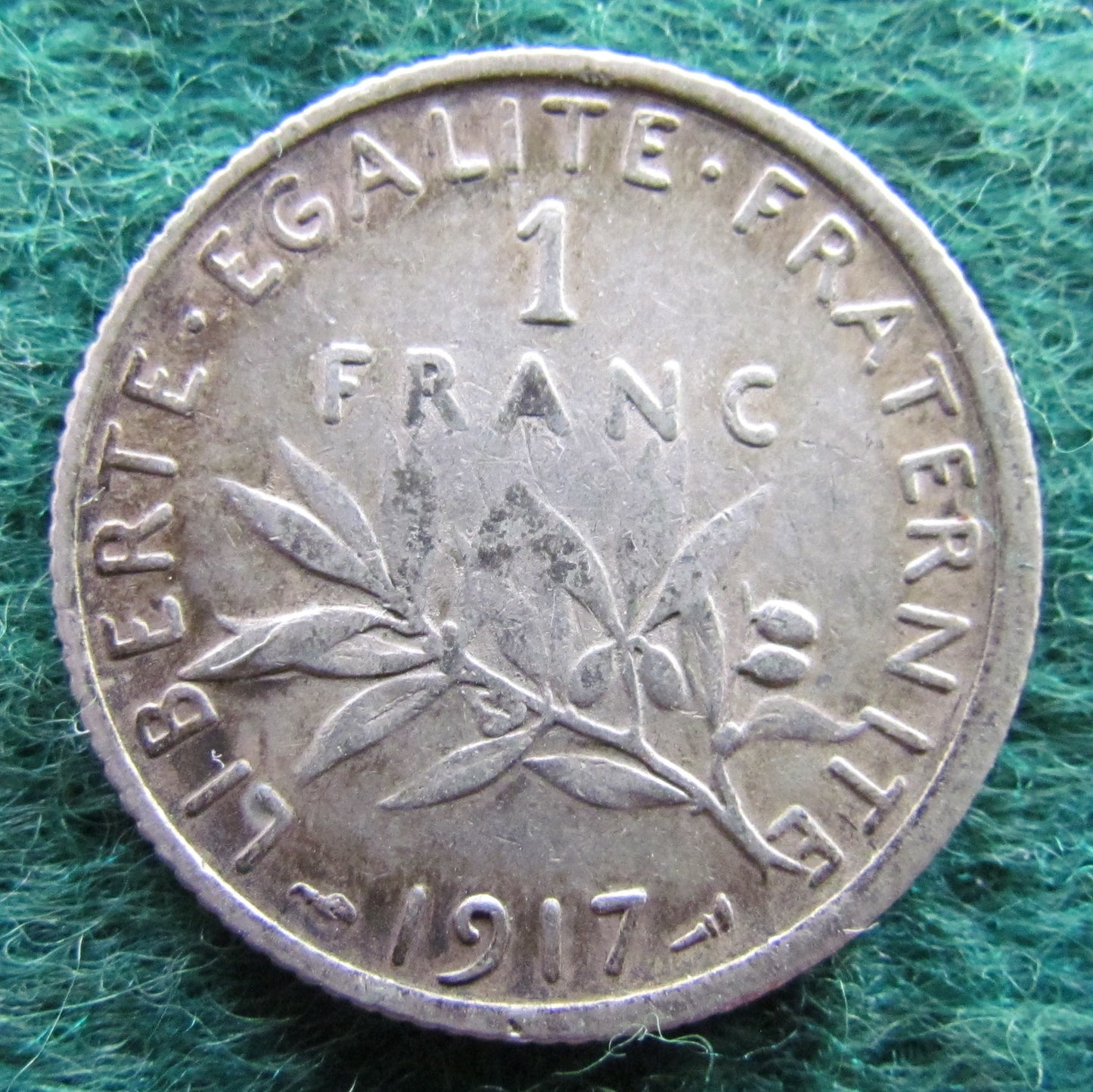 French 1917 1 Franc Coin - Circulated - WWI Currency. A good to better coin showing wear consistent with light to moderate circulation and handling, please view images. All images shown are of the actual item.