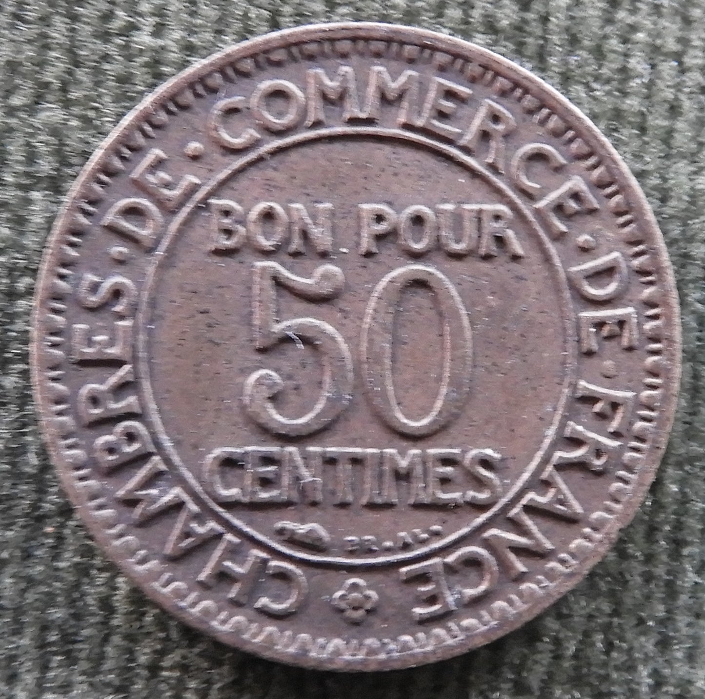 French 1923 50 Centimes Chamber Of Commerce Coin - Commerce Industrie Coin. A good coin showing wear consistent with moderate to heavy handling in circulation, please view images. All images shown are of the actual coin.