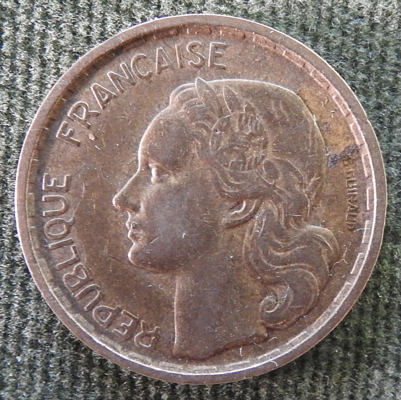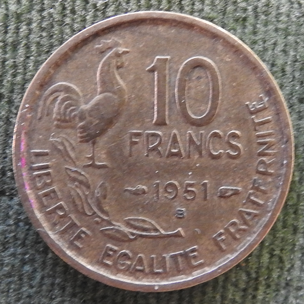 French 1951 B 10 Franc Coin - Circulated. A good coin showing wear consistent with moderate handling in circulation, please view images. All images shown are of the actual coin.