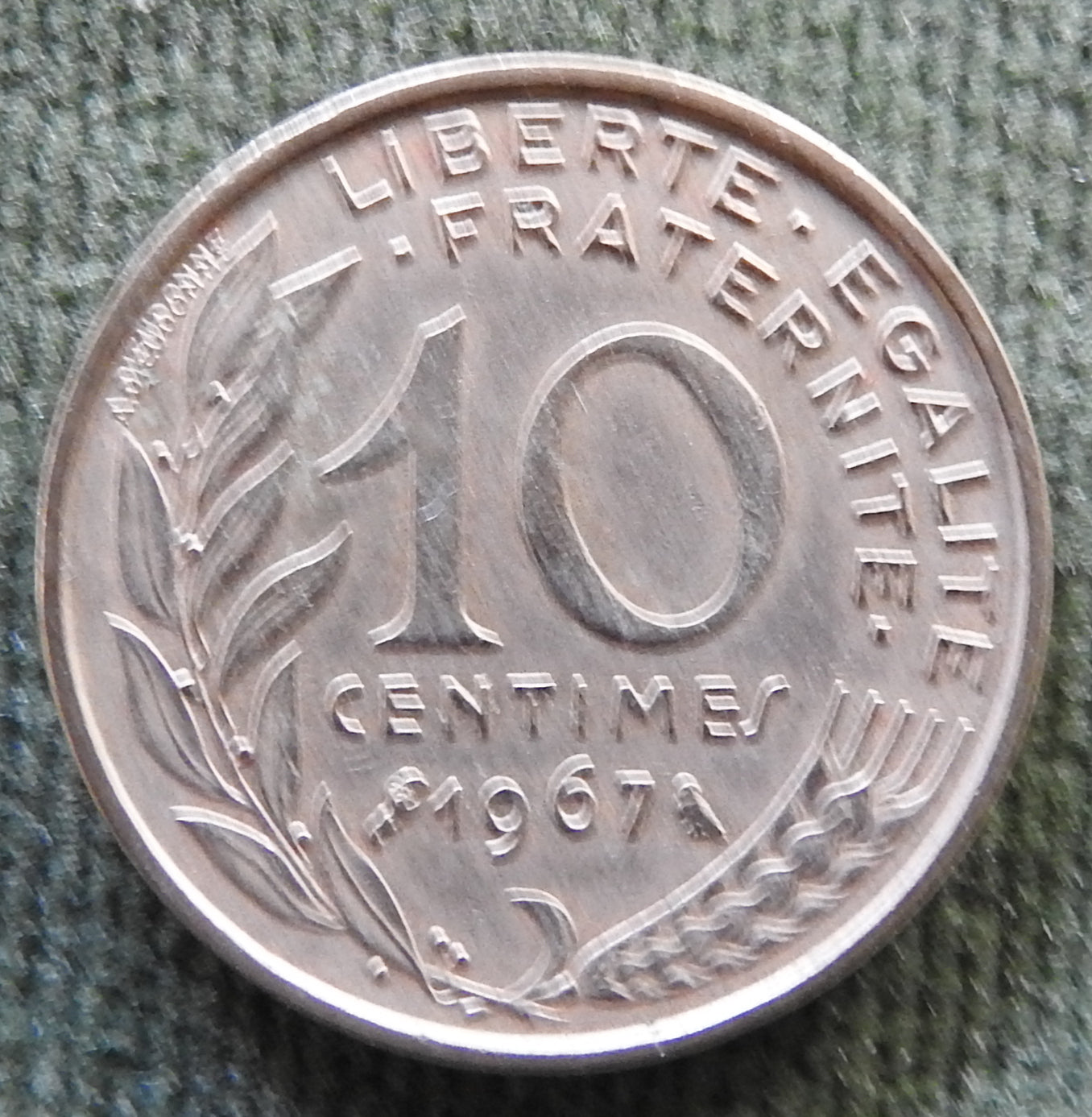 French 1967 10 Centimes Coin - Circulated. A good coin showing wear consistent with light to moderate handling in circulation, please view images. All images shown are of the actual coin.