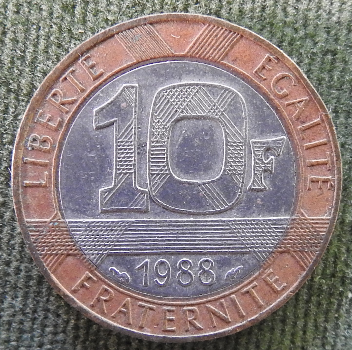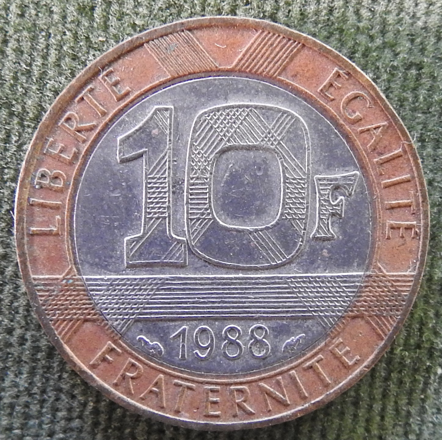French 1988 10 Franc Coin - Circulated. A good coin showing wear consistent with moderate handling in circulation, please view images. All images shown are of the actual coin.