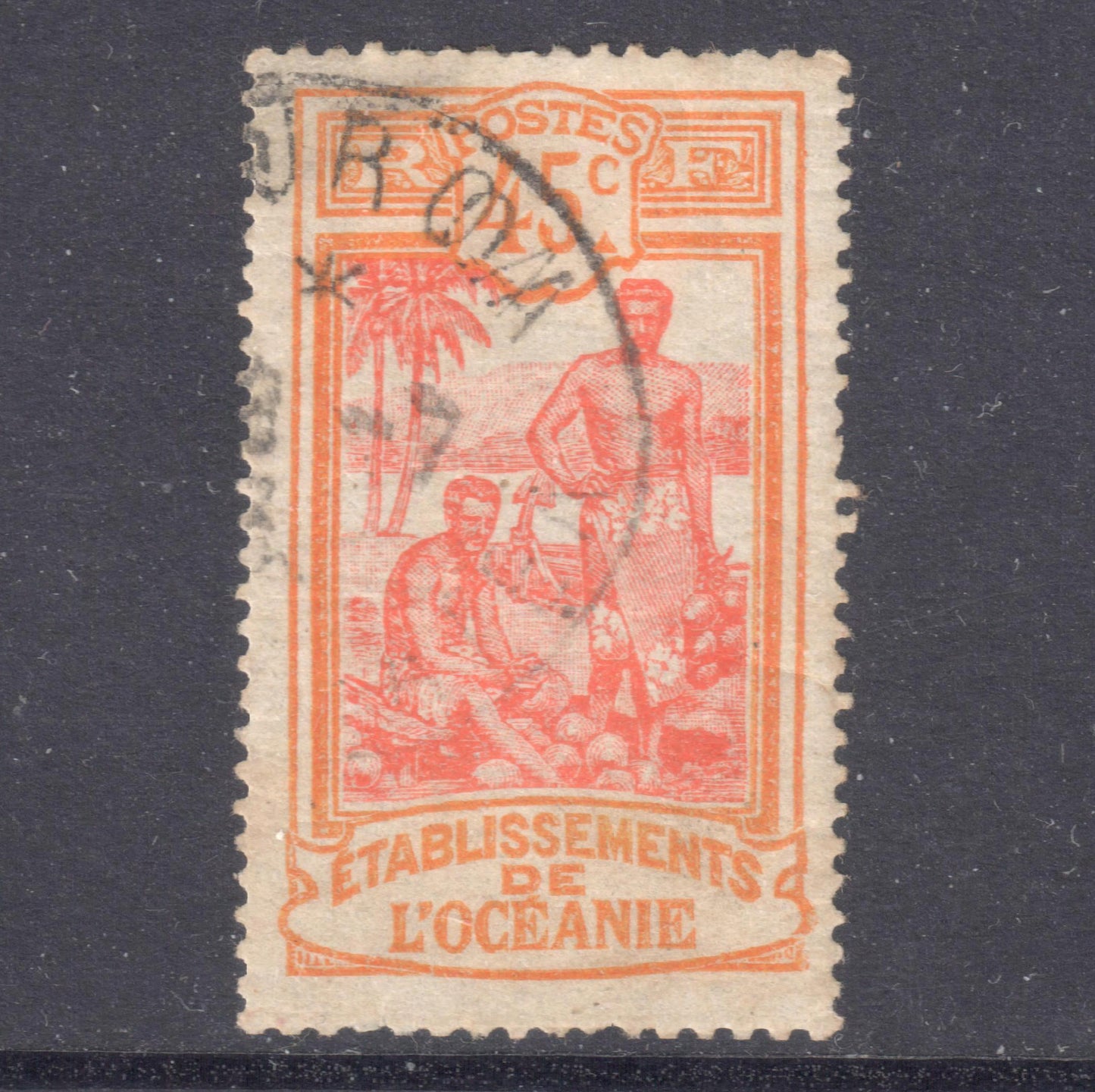 French Oceania 1913 - 15 45c Orange/Red Local Motives Stamp - Cancelled. A used & cancelled stamp. Please view images as all images are of the actual item.