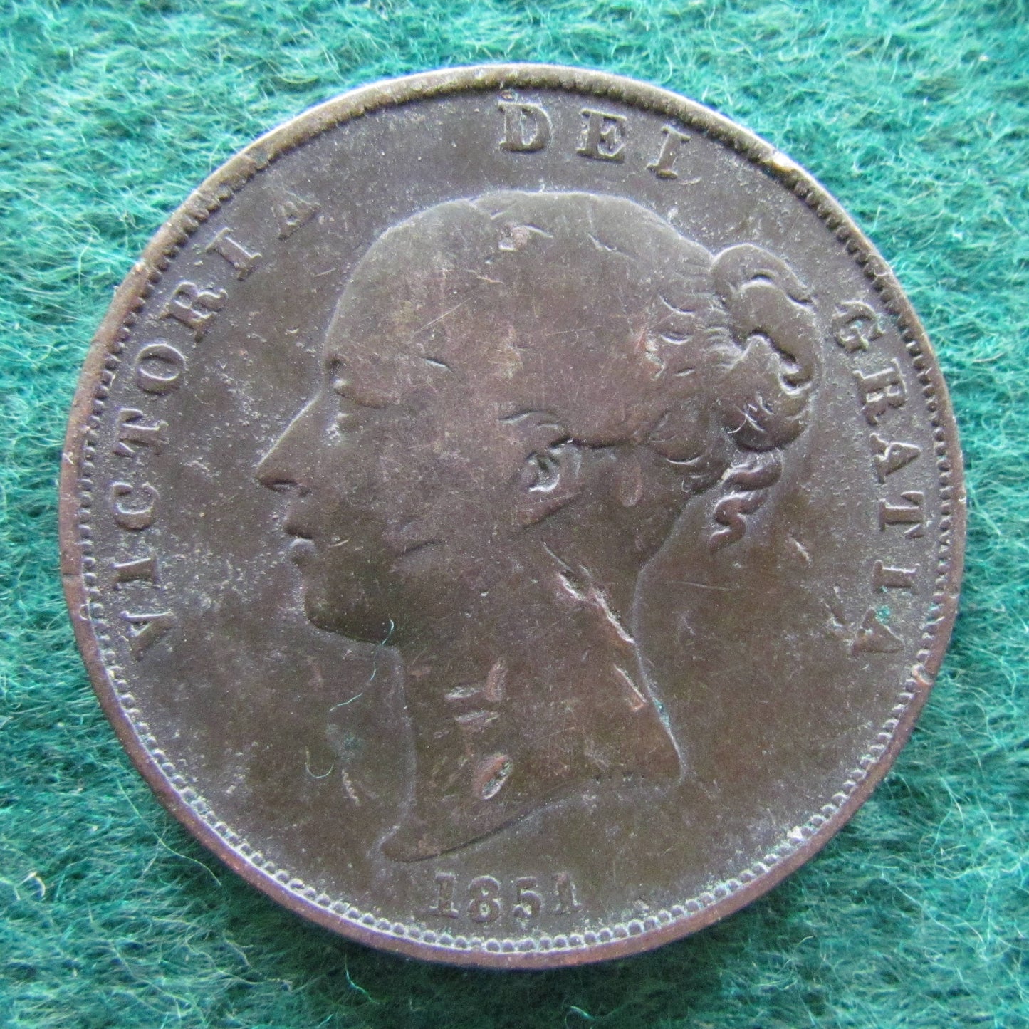 GB British UK English 1851 Penny Queen Victoria Coin - Young Head
