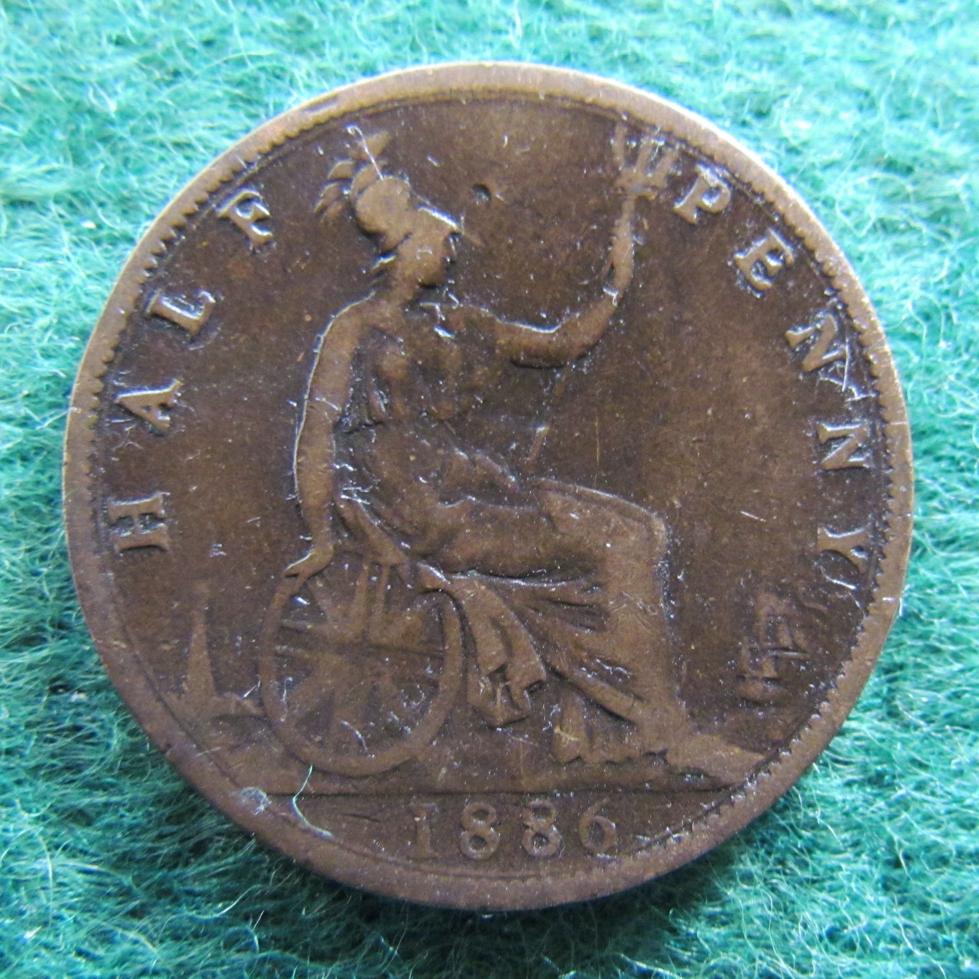 GB British UK English 1886 Half Penny Queen Victoria Coin - Bun Head. A fair to good condition coin, please view images. All images shown are actual coin.
