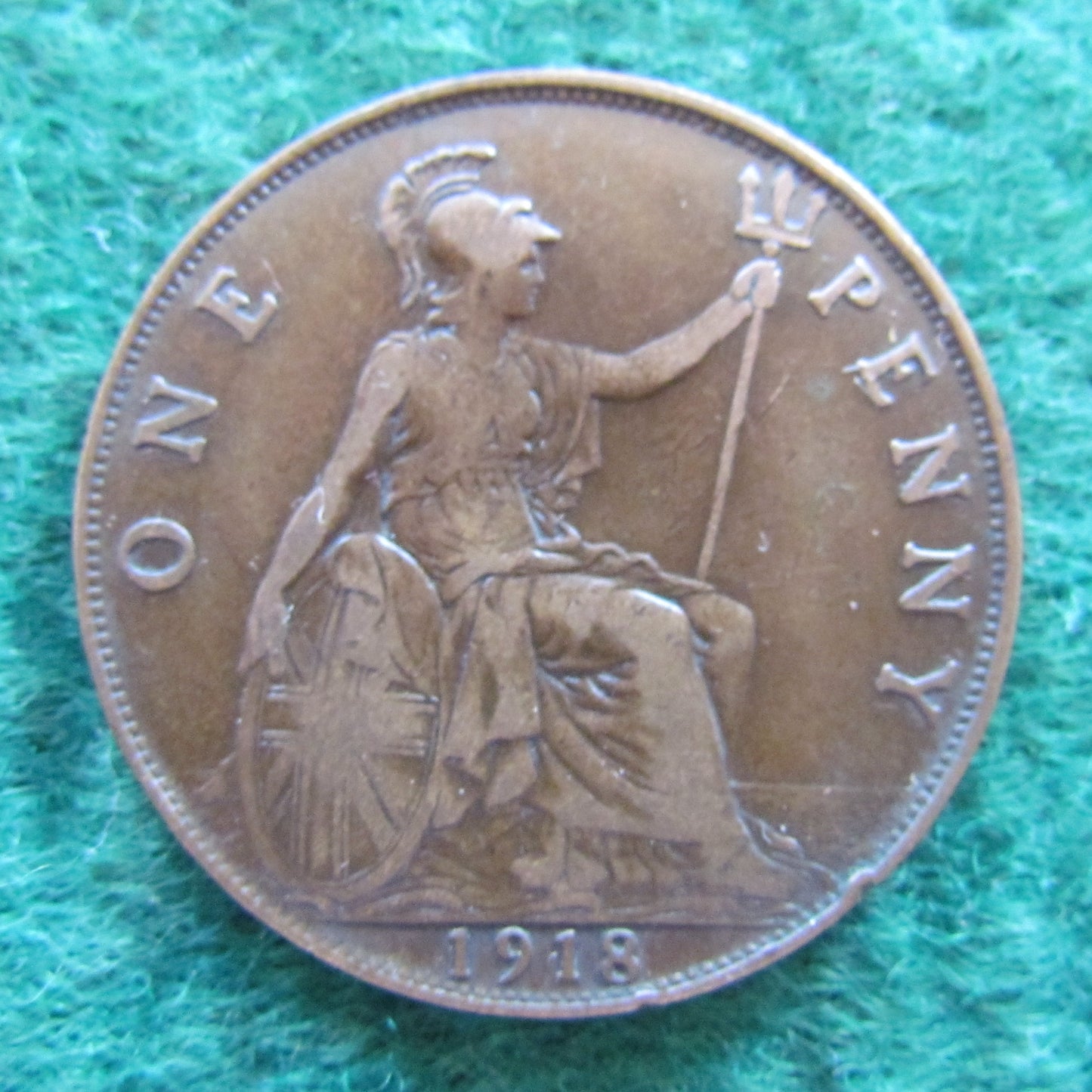 GB British UK English 1918 Penny King George V Coin. A good to very good example showing wear and colouring consistent with long term circulation, please view images. All images shown are of the actual item.
