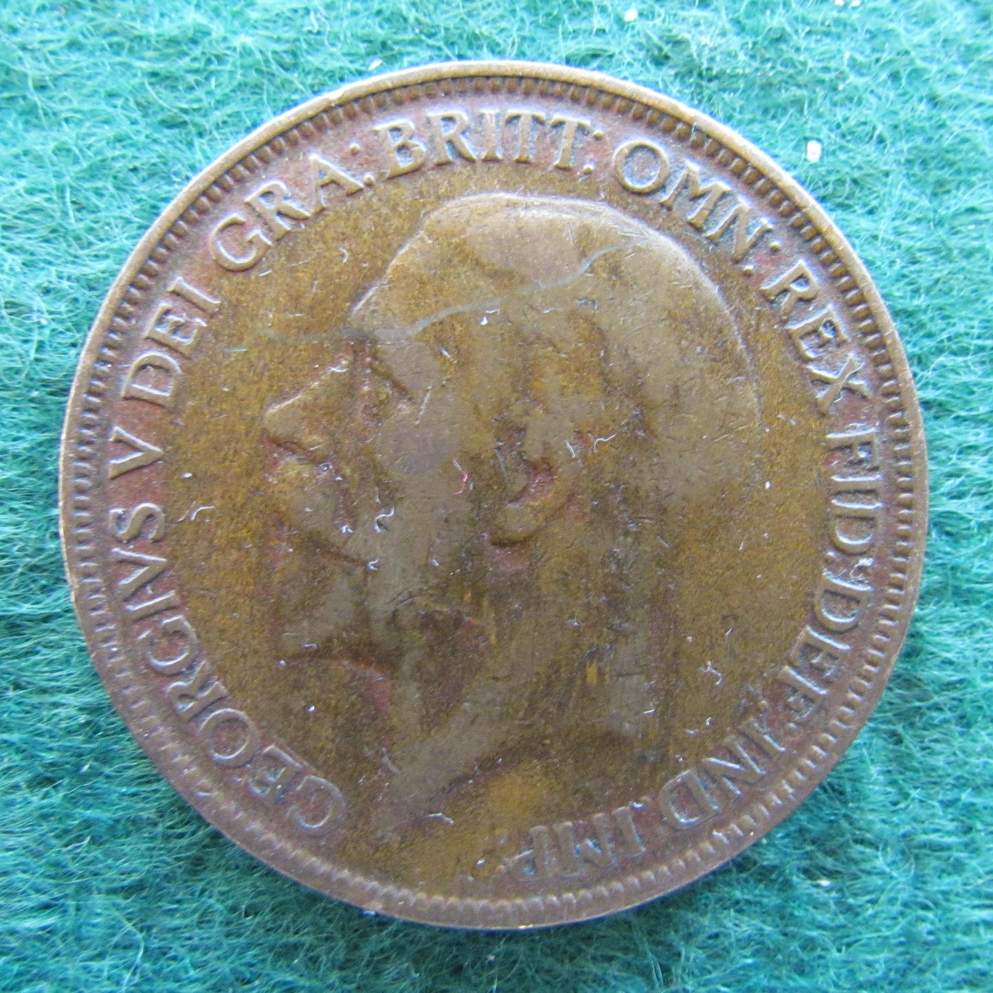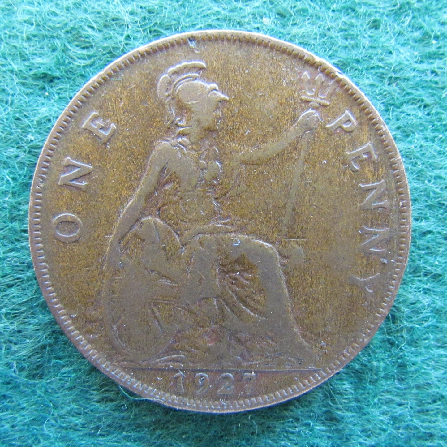 GB British UK English 1927 Penny King George V Coin. A fair to good condition coin showing wear consistent with long term circulation and moderate handling, please view images. All images shown are actual coin.
