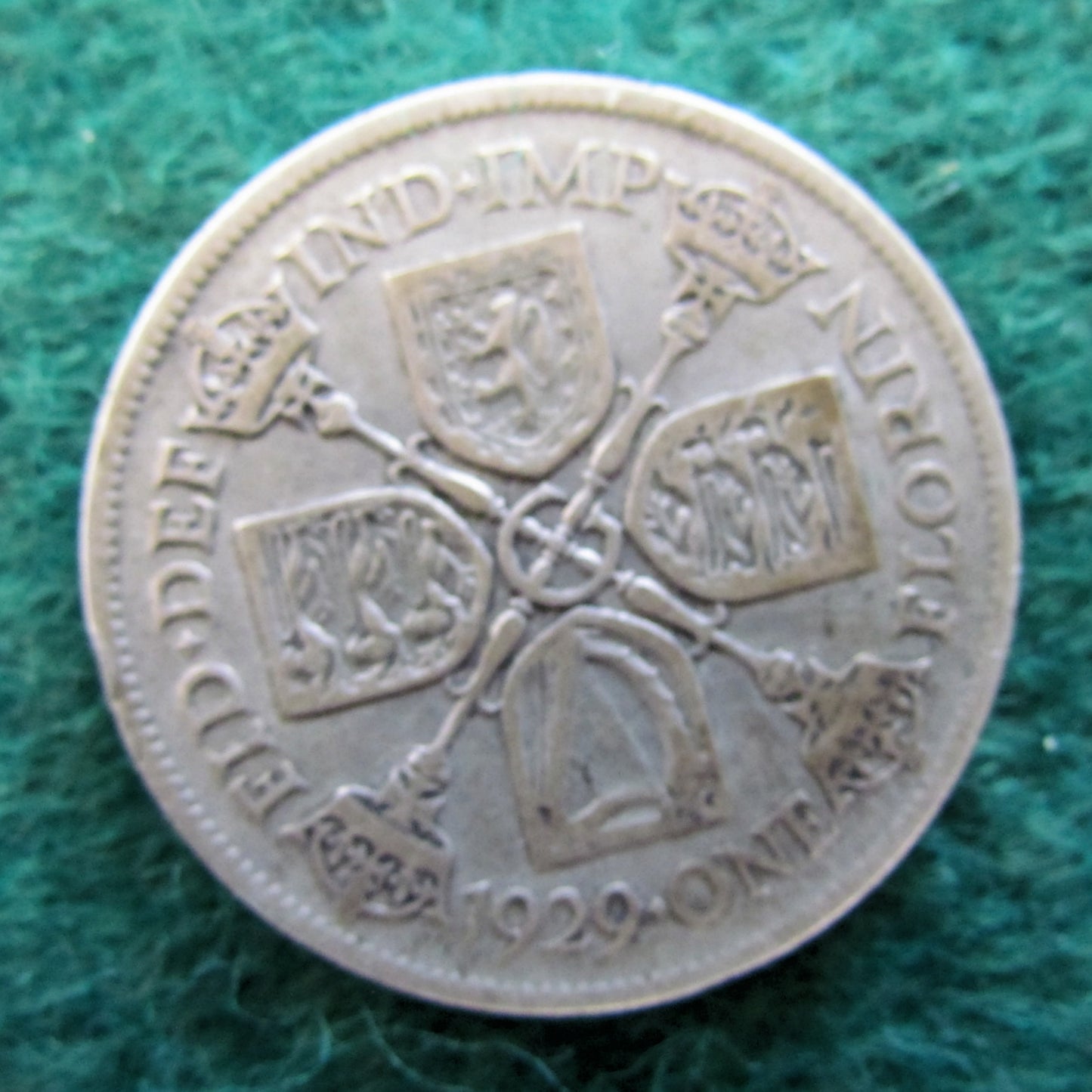 GB British UK English 1929 2 Shilling King George V Coin. A fair to good coin showing wear consistent with its period in circulation, heavily Handled, please view images. All images shown are of the actual item.