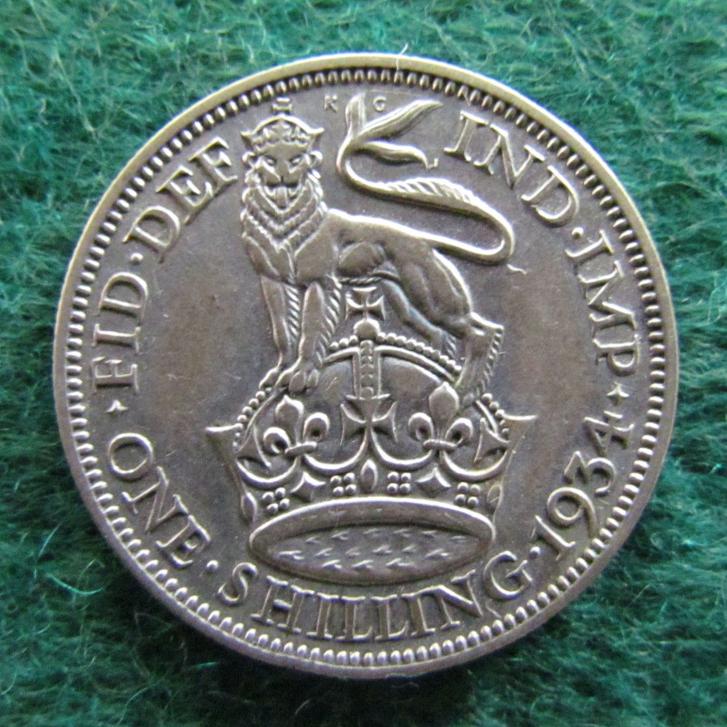 GB British UK English 1934 Shilling King George V Coin. All images shown are actual coin