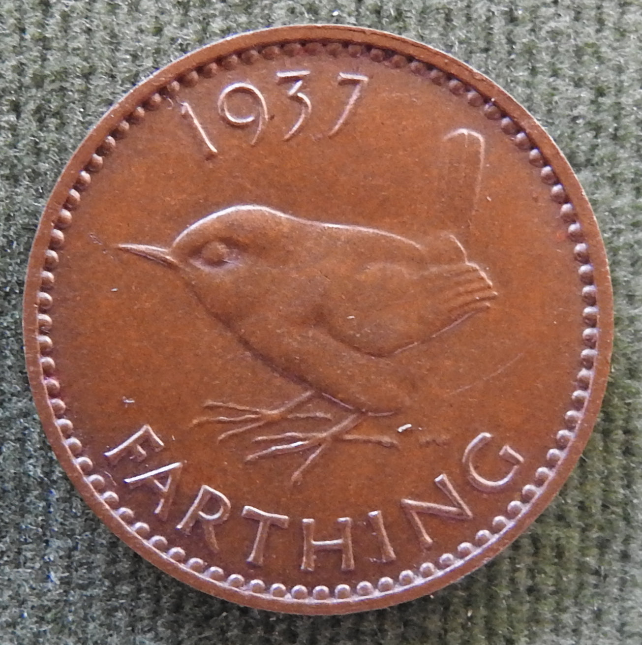GB British UK English 1937 Farthing King George VI Coin. A good to very good condition coin showing wear consistent with short term circulation and light handling, please view images. All images shown are of the actual item.