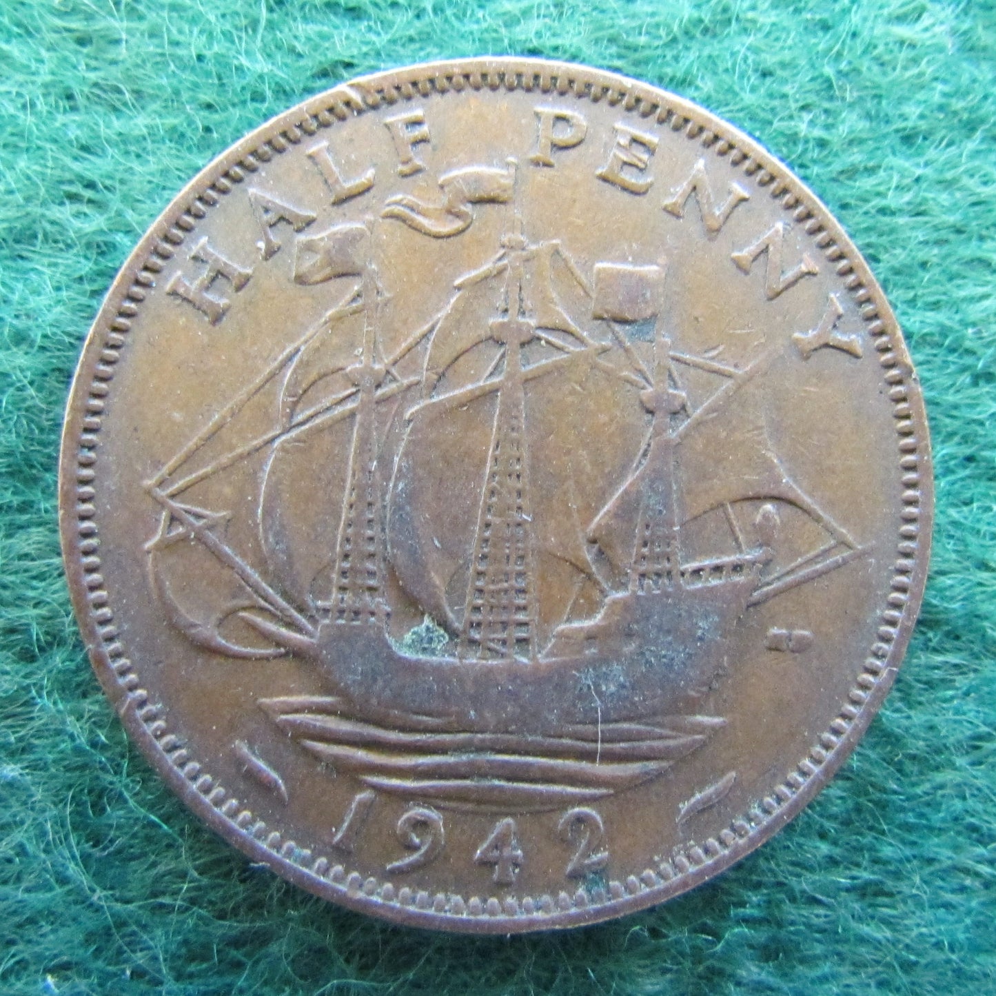 GB British UK English 1942 Half Penny King George VI Coin. A well circulated coin in good condition, moderate handling with surface blemishes, please view images. All images shown are of the actual item.