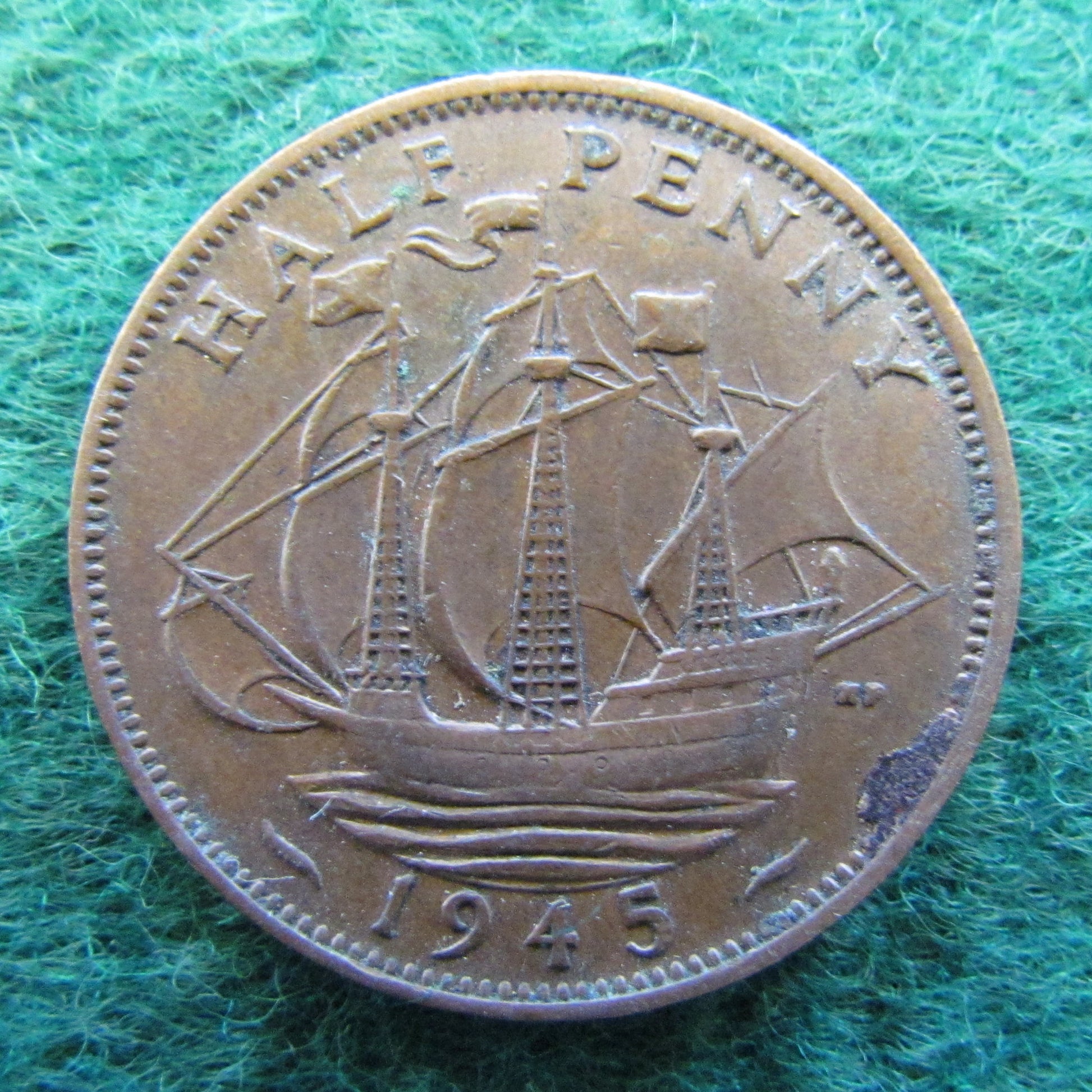 GB British UK English 1945 Half Penny King George VI Coin. A good coin showing wear consistent with moderate circulation and moderate handling, please view images. All images shown are actual coin.
