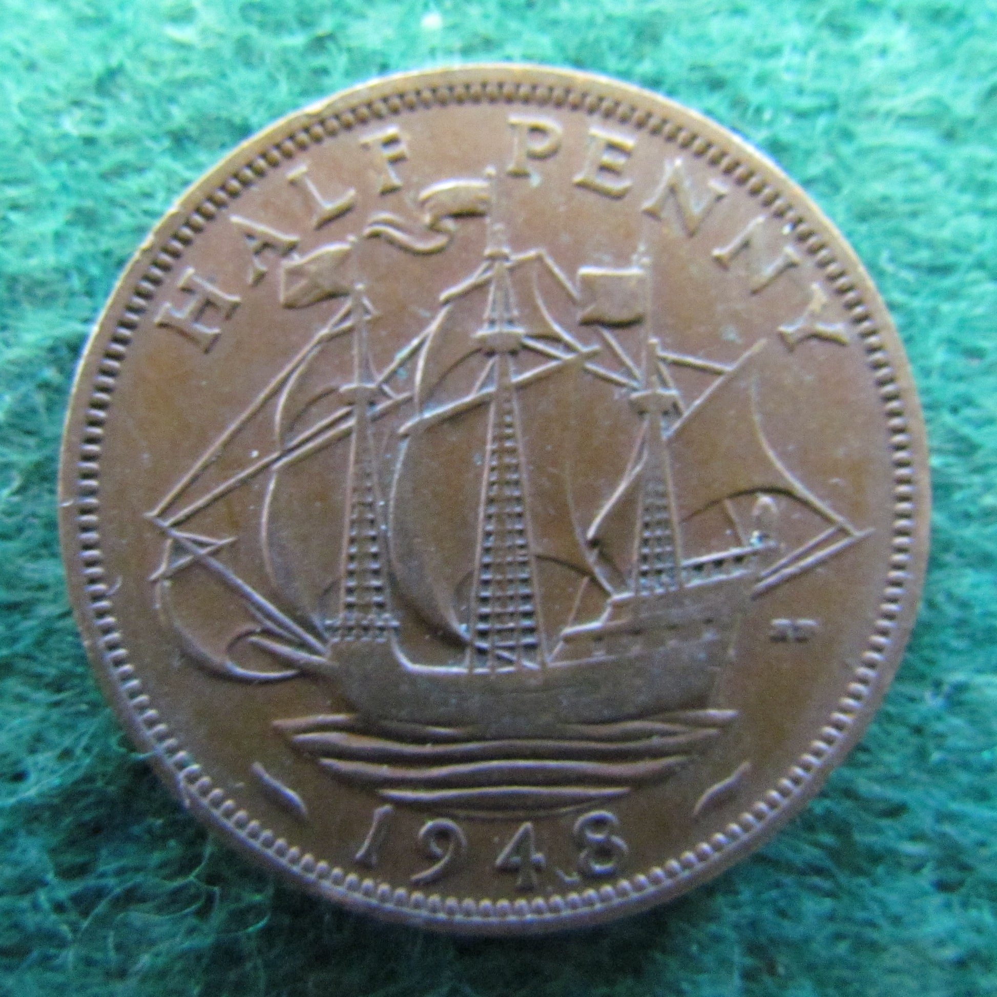 GB British UK English 1948 Half Penny King George VI Coin. A good coin showing wear consistent with moderate circulation and moderate handling, please view images. All images shown are actual coin.