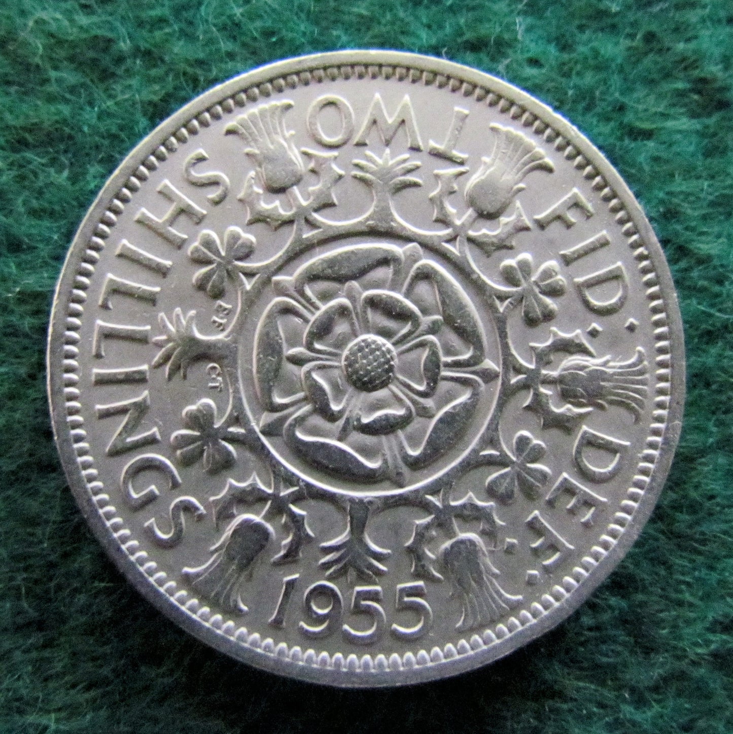 GB British UK English 1955 2 Shilling Queen Elizabeth II Coin