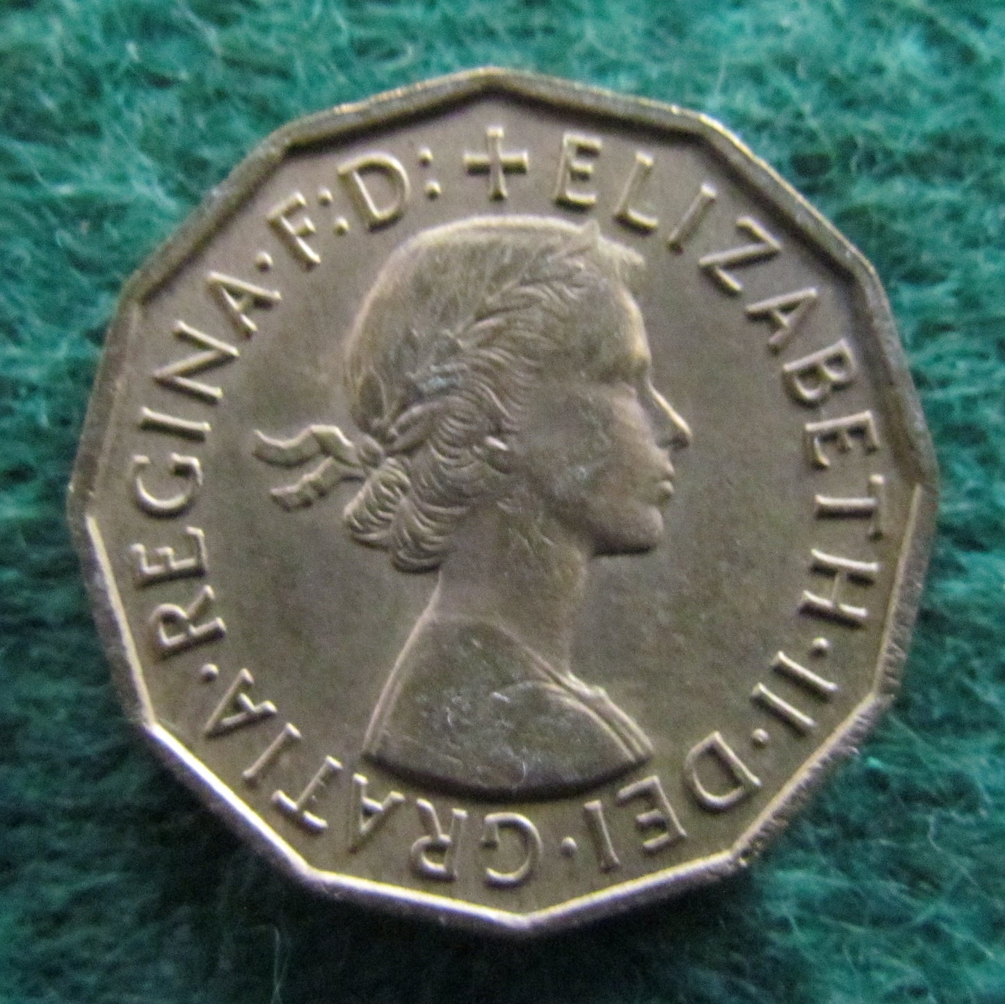 GB British UK English 1955 Threepence Queen Elizabeth II Coin. A good coin showing wear consistent with its age and period in circulation, please view images. All images shown are of the actual coin.