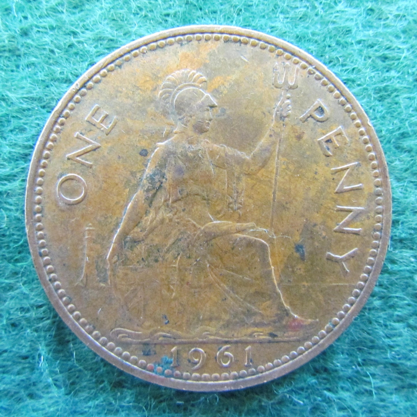 GB British UK English 1961 Penny Queen Elizabeth II Coin. A fair to good coin showing wear consistent with its period in circulation moderate handling with surface blemishes, please view images. All images are of the actual item.