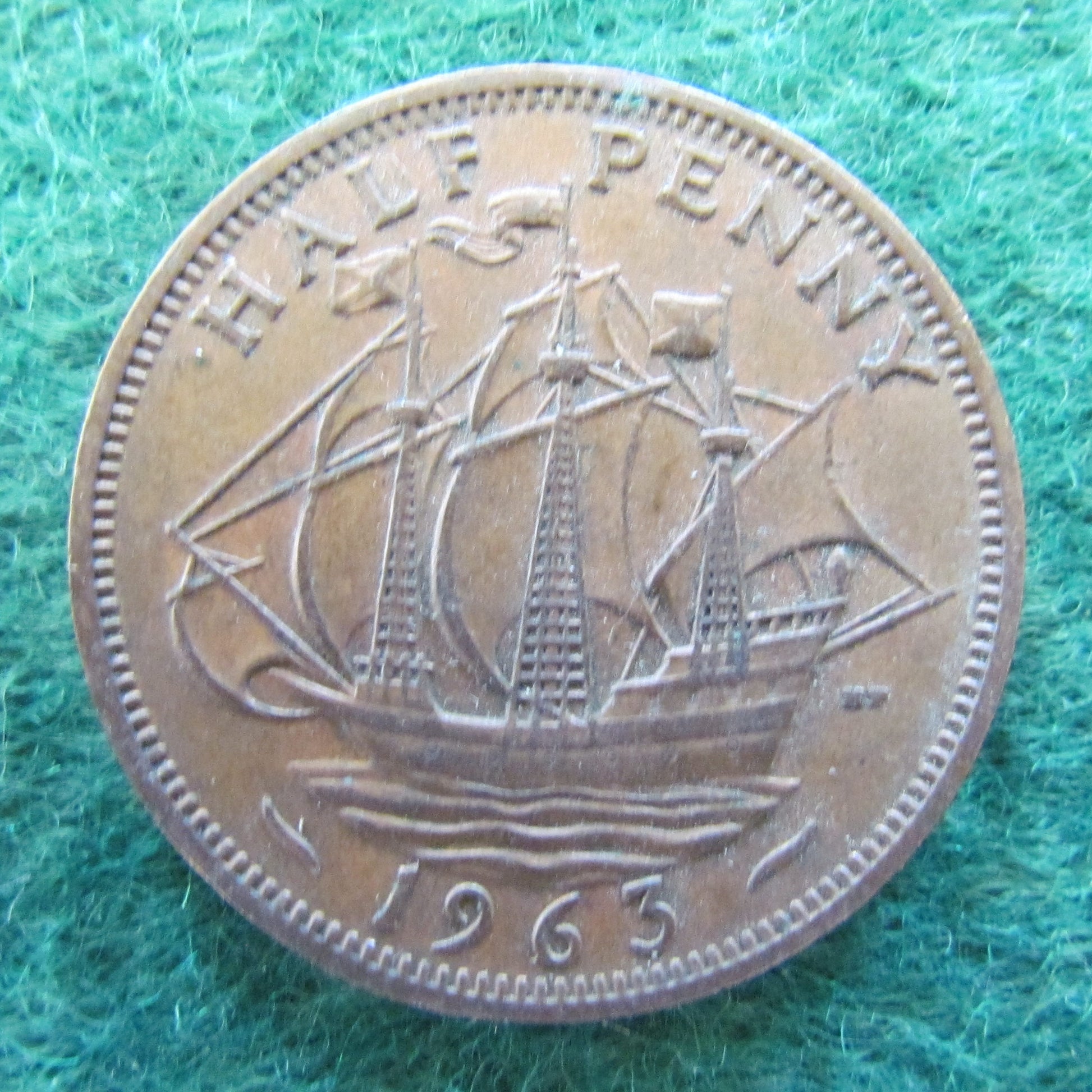 GB British UK English 1963 Half Penny Queen Elizabeth II Coin. A good coin showing wear consistent with short circulation and light handling, please view images. All images shown are actual coin.