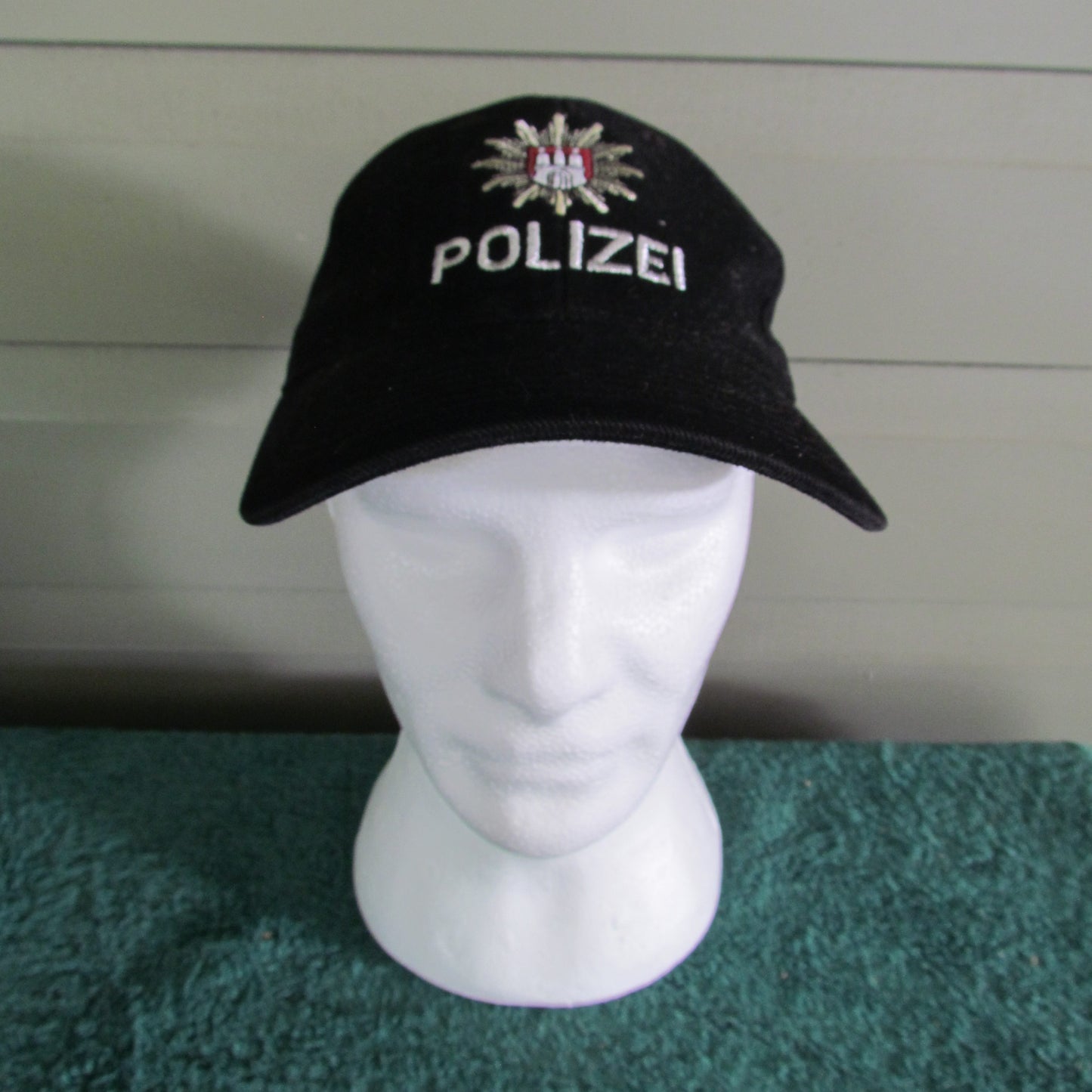 German Hamburg Police Baseball Style Cap. A vintage Hamburg Polizei Cap lightly worn with embroidered insignia, size 57. Please view images as all images are of the actual item.
