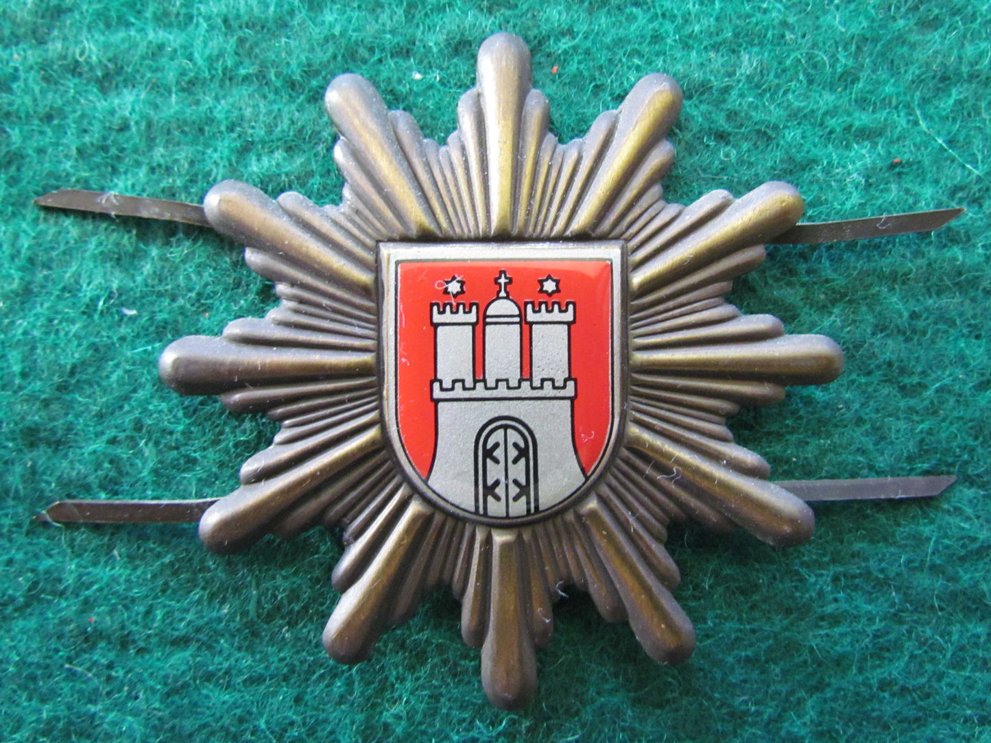 German Hamburg Police Hat Badge. An authentic vintage German Hamburg Police hat badge in pristine condition. Please view images as all images are of the actual item.