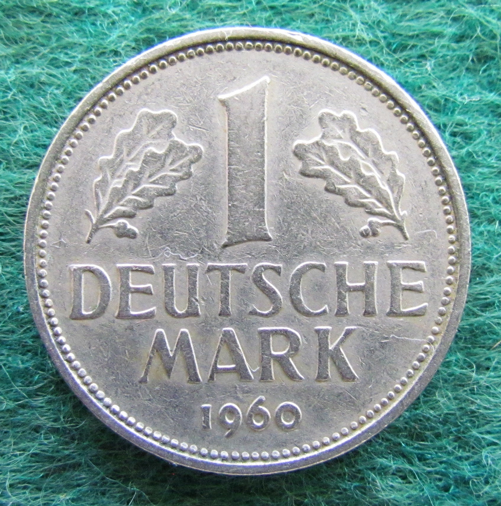 Germany 1960 F 1 Deutsche Mark Coin - Circulated. A good coin showing wear consistent with medium term circulation and moderate handling. Please view images as all images shown are of the actual item.