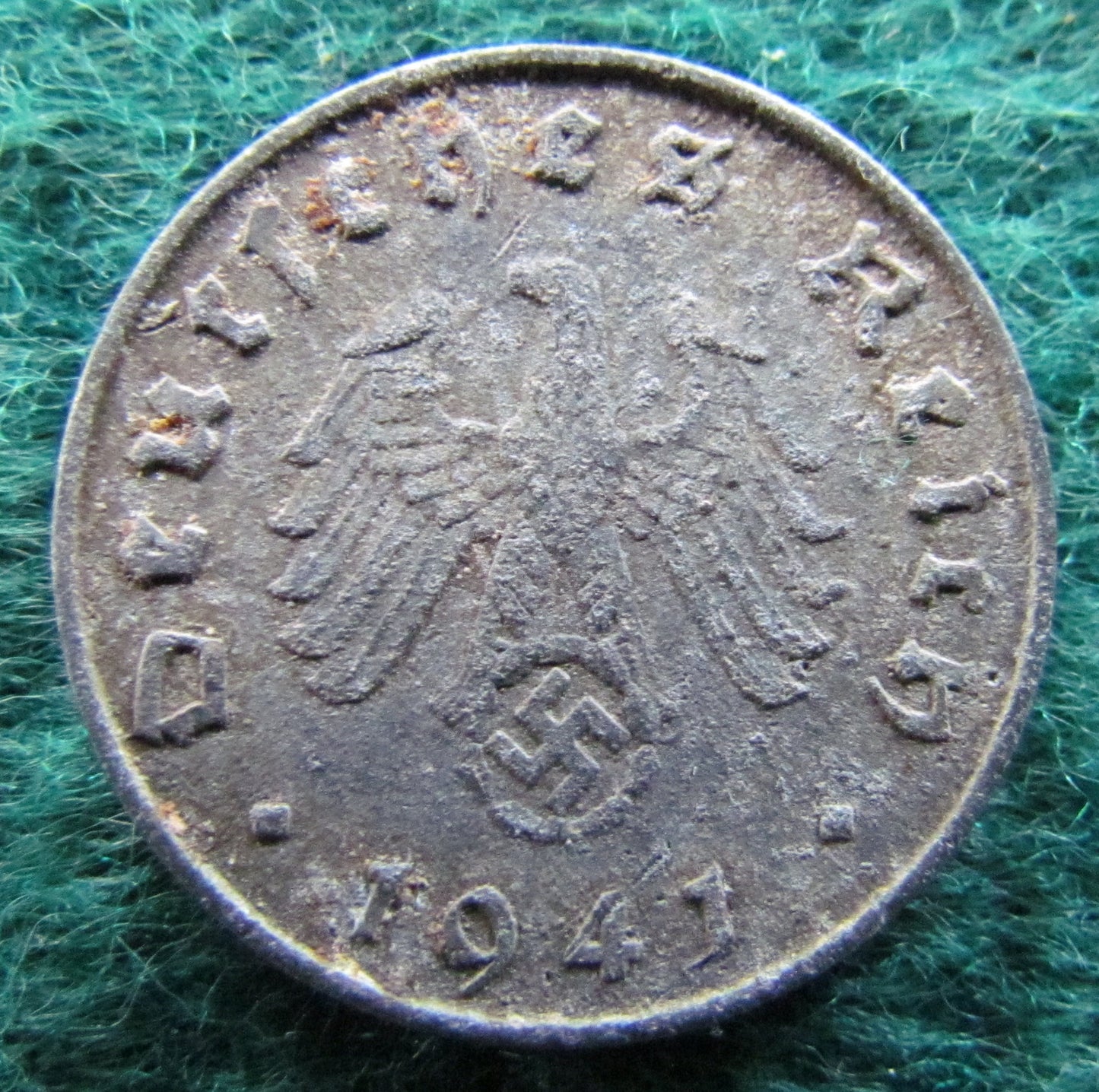Germany 1941 G 10 Pfennig Coin - Circulated. A good coin showing wear consistent with moderate handling in medium term circulation, oxidised with a few blemishes. Please view images as all images shown are of the actual item.