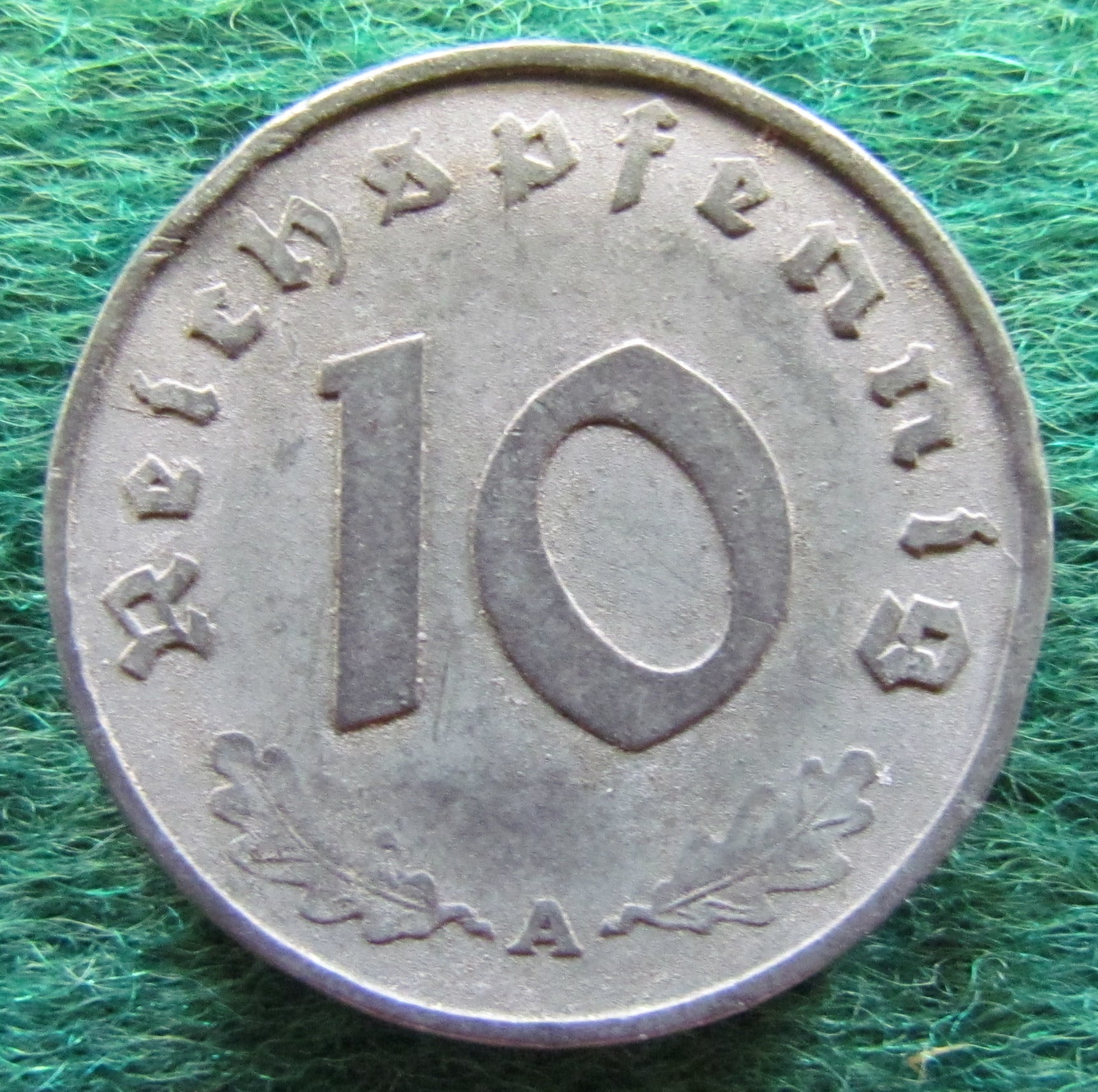 Germany 1943 A 10 Pfennig Coin - Circulated. A good coin showing wear consistent with moderate handling in medium term circulation. Please view images as all images shown are of the actual item.