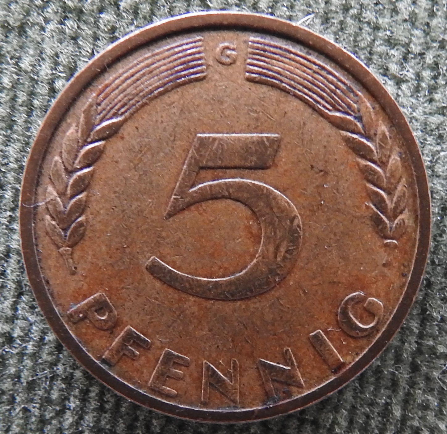 Germany 1950 G 5 Pfennig Coin. A good coin showing wear consistent with light to moderate handling in circulation. Please view images as all images shown are of the actual item.