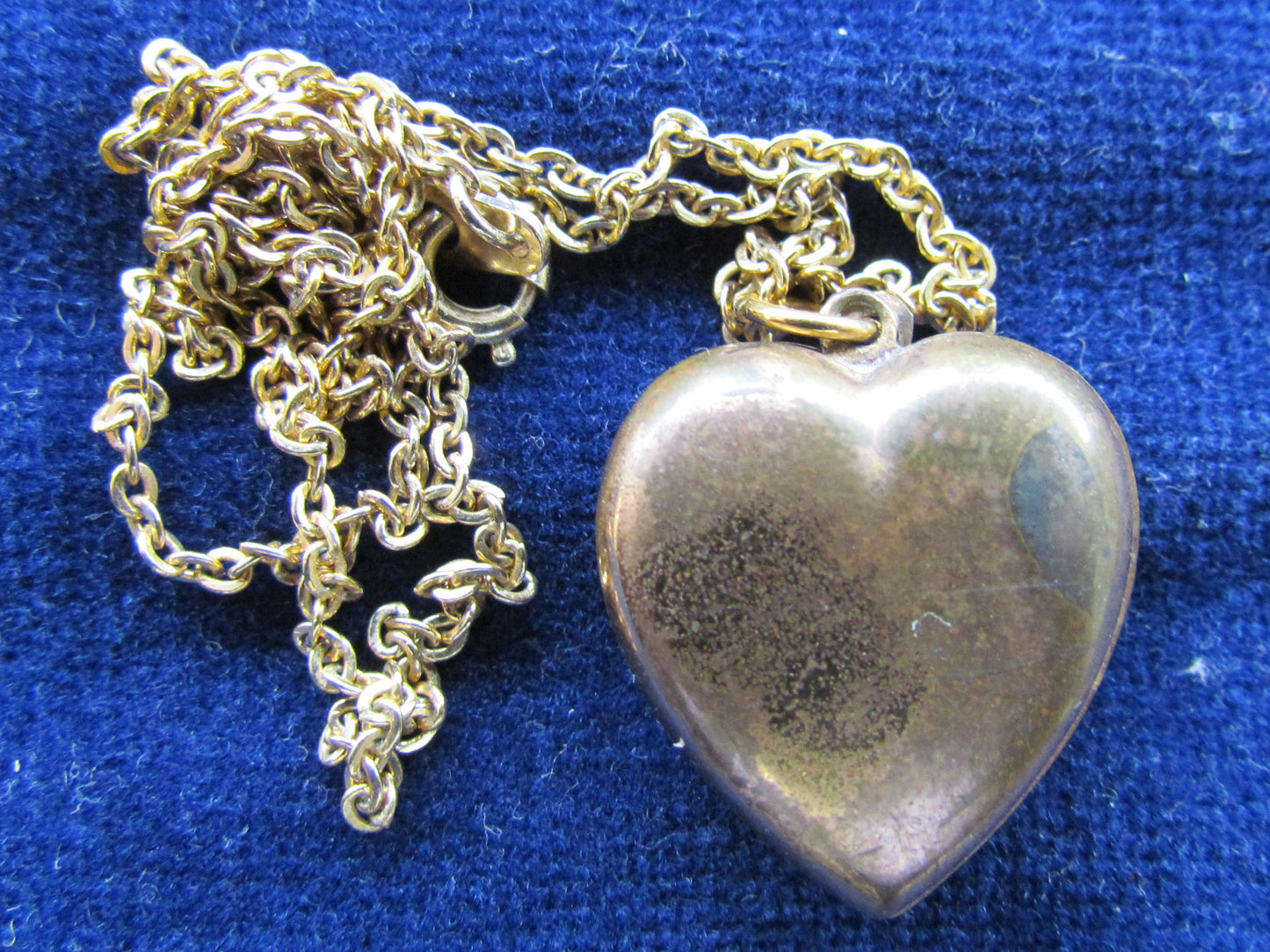 Gilt Heart Shaped Sweethearts Photo Locket With Chain. Plating is vert worn sold 'As Is'. The Image is of B. Tucker No. 153926. Please view images as all images are of the actual item.