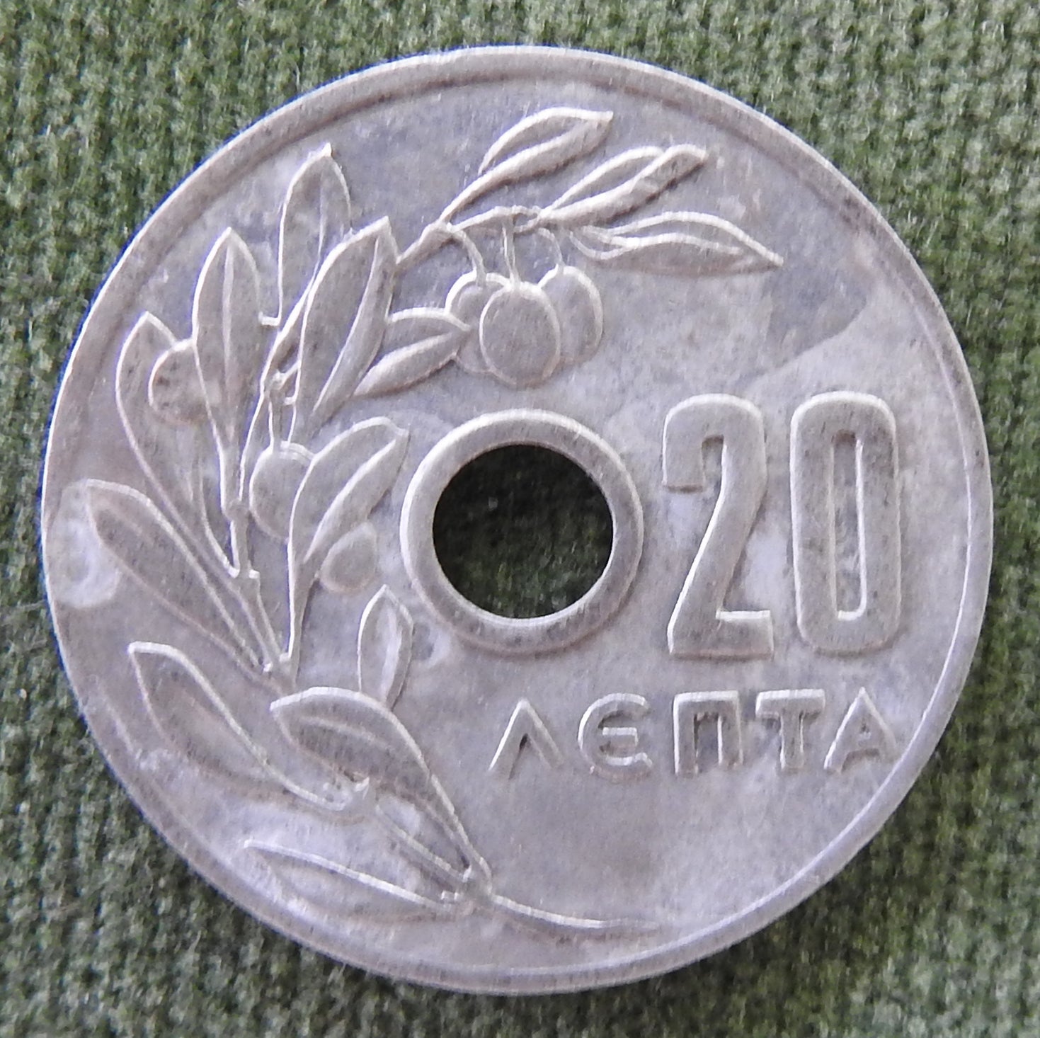 Greek 1954 20 Lepta King Paul I Coin. A good aluminum coin having good detail and showing wear consistent moderate handling and an intermediate period in circulation. Please view images as all images shown are of the actual item.