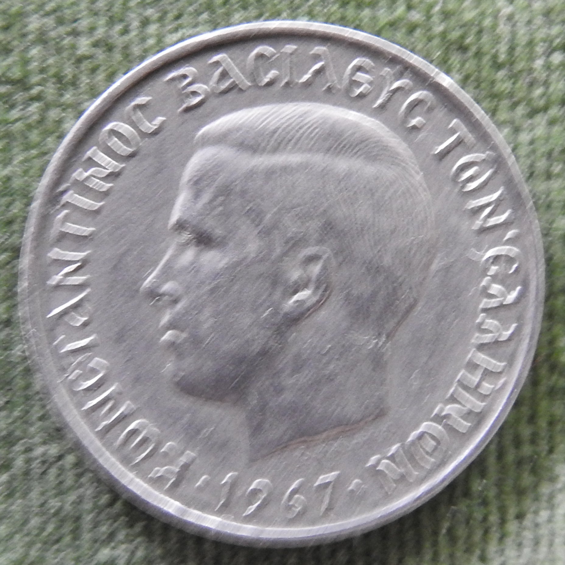 Greek 1967 2 Drachma Coin King Constantine II. A good coin having good detail consistent with intermediate term circulation. Please view images as all images shown are of the actual item.