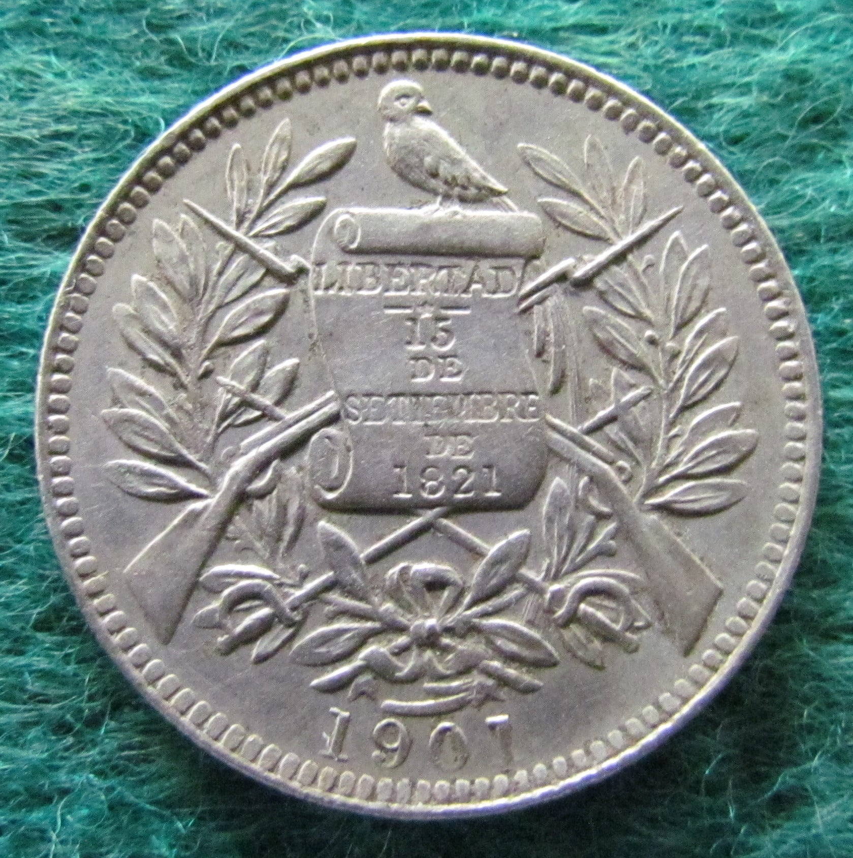 Guatemala 1901 1 Real Coin - Circulated. A good to better coin showing wear consistent with short term circulation and light handling, please view images. All images are of the actual coin.