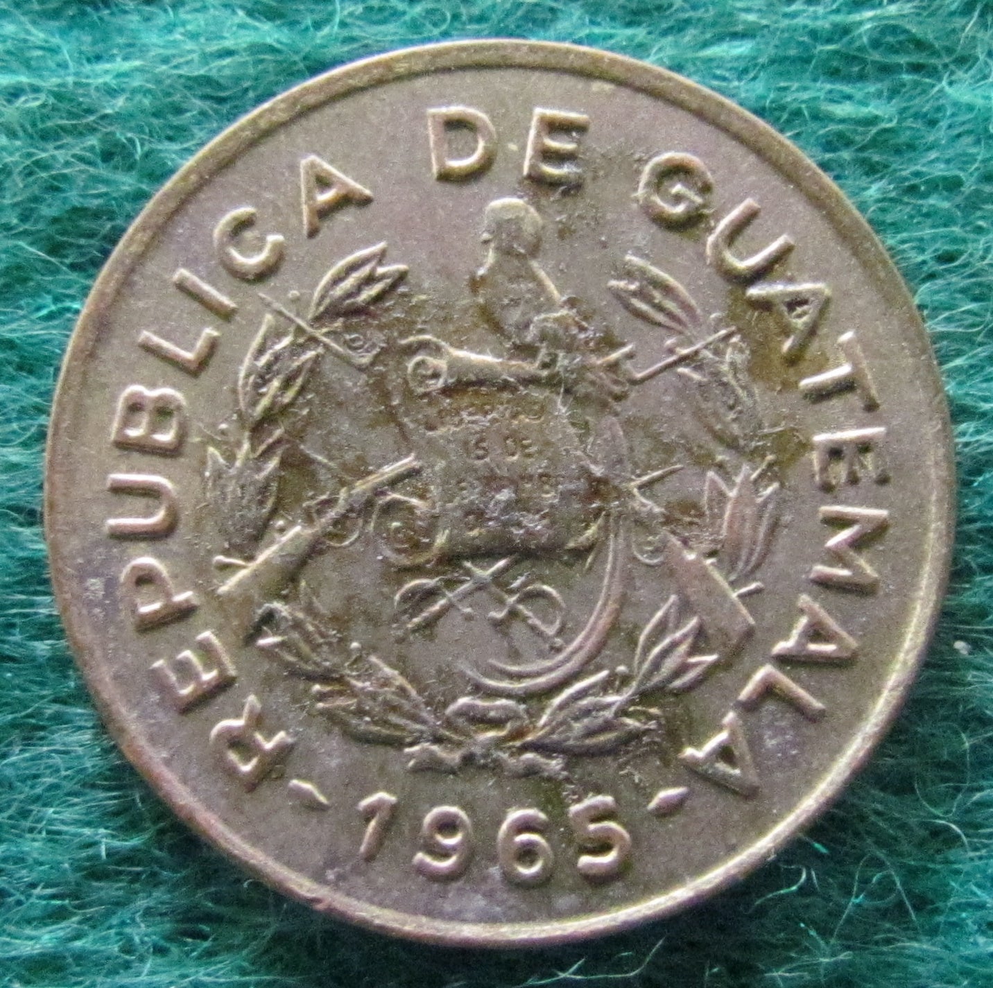 Guatemala 1965 1 Centavo Coin - Circulated. A good coin showing wear consistent with short term circulation and light handling having surface blemishes. Please view images as all images shown are of the actual item.