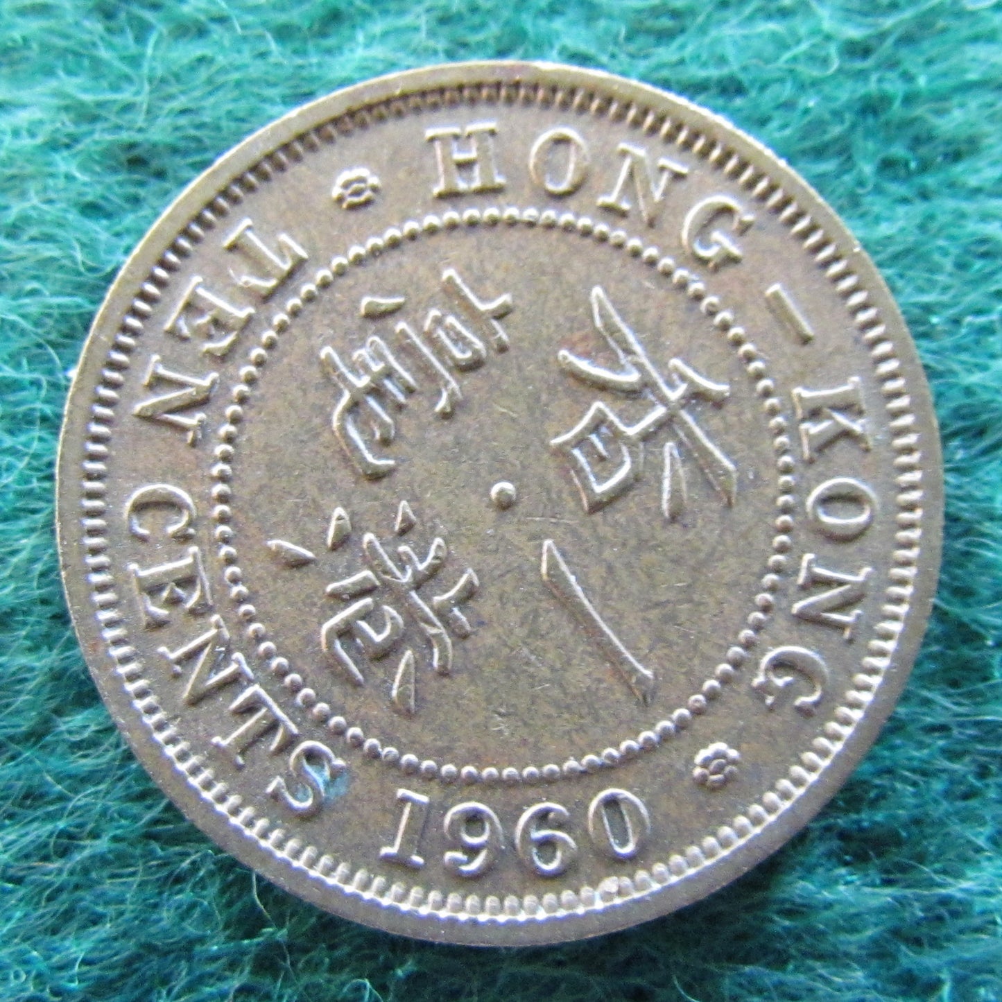 Hong Kong 1960 Ten Cent Queen Elizabeth II Coin - Circulated. A good coin showing wear consistent with age and period in circulation. Please view images as all images shown are of the actual item.