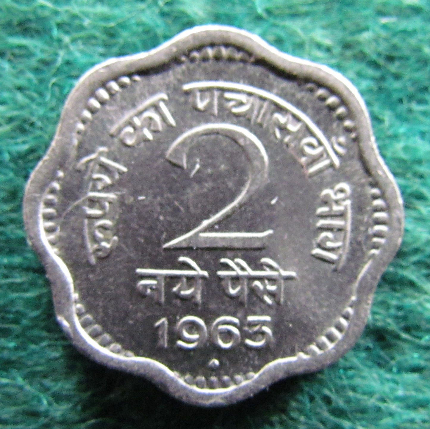 India 1963 2 Paise Coin. A good coin showing wear & handling consistent with light to moderate circulation. Please view images as all images are of the actual item.