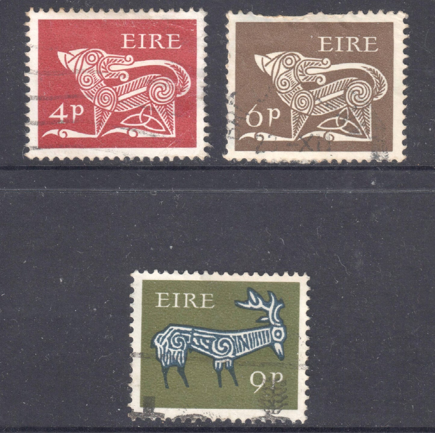 Ireland Eire 1968 - 1969 Old Irish Animal Symbols Stamp Group of 3 - Perfin:15. Used & postmarked stamps. Please view images as all images are of the actual item.