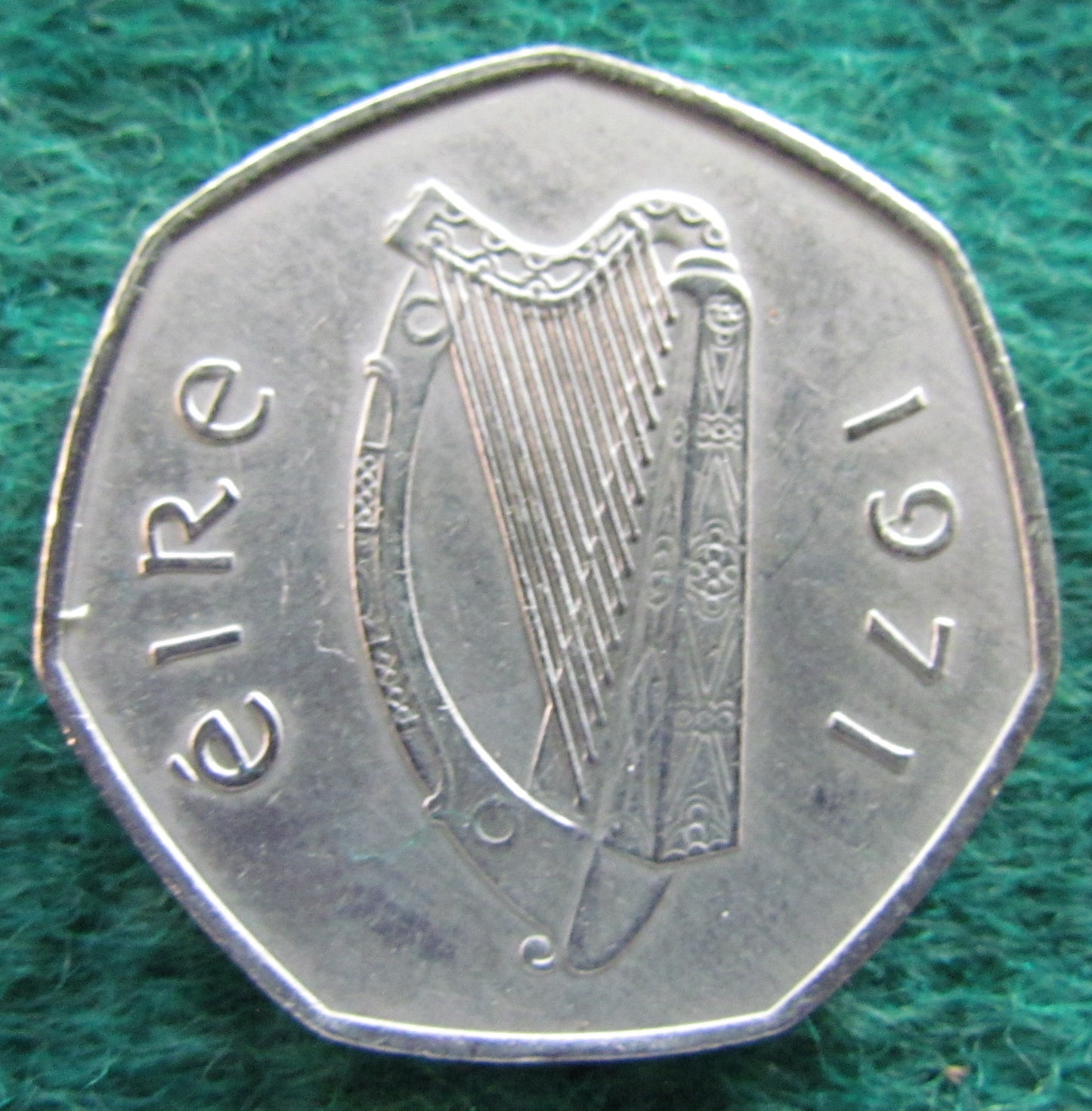 Ireland Eire 1971 50 Pence Coin. A good coin showing wear consistent with a moderate term circulation and handling. Please view images as all images are of the actual item.