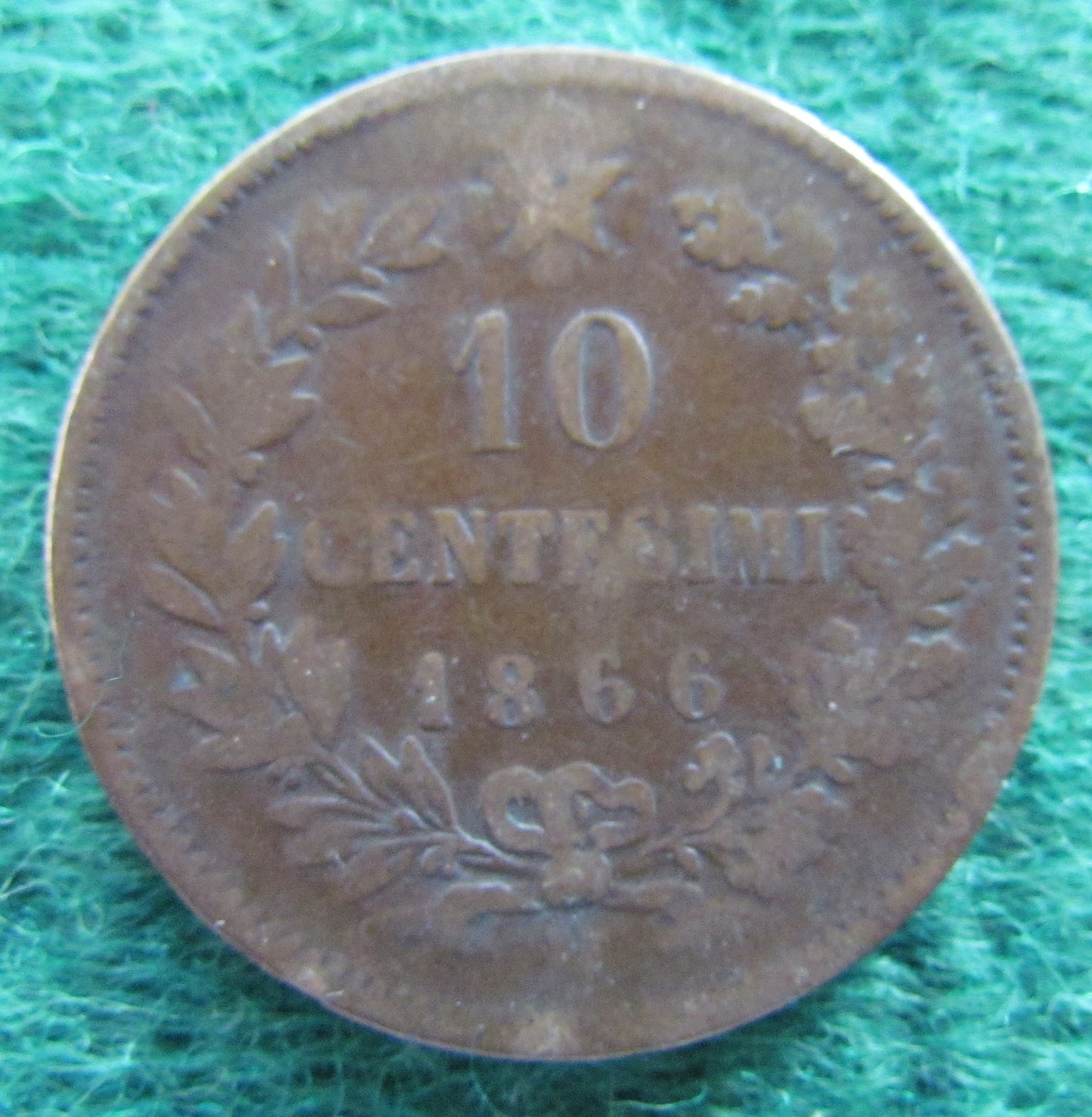 Italy 1866 M 10 Centesimi Coin - Vittorio Emanvelle II