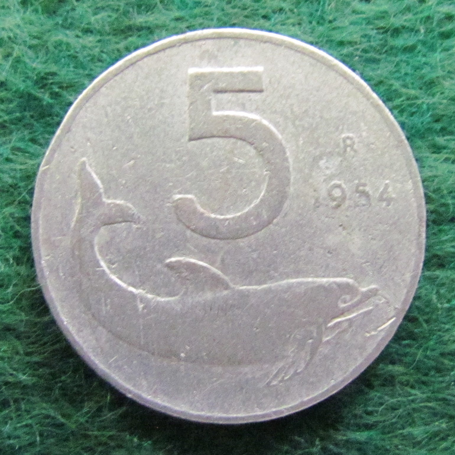 Italy 1954 5 Lira Coin - Circulated. A coin in fair to good condition having fair to good detail, showing wear consistent its age and period in circulation. Please view images as all images shown are of the actual item.