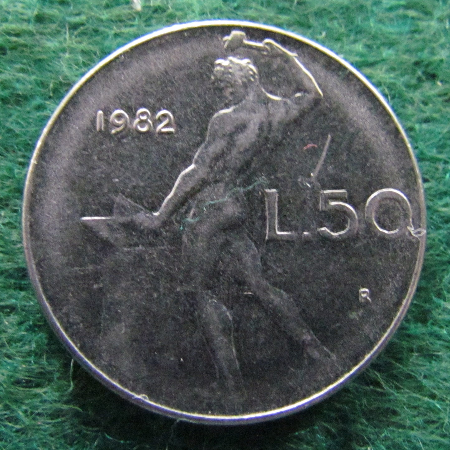 Italy 1982 50 Lira Coin - Circulated. A good having fair to good detail, showing wear consistent its age and period in circulation having what appears as a lamination error. Please view images as all images shown are of the actual item.