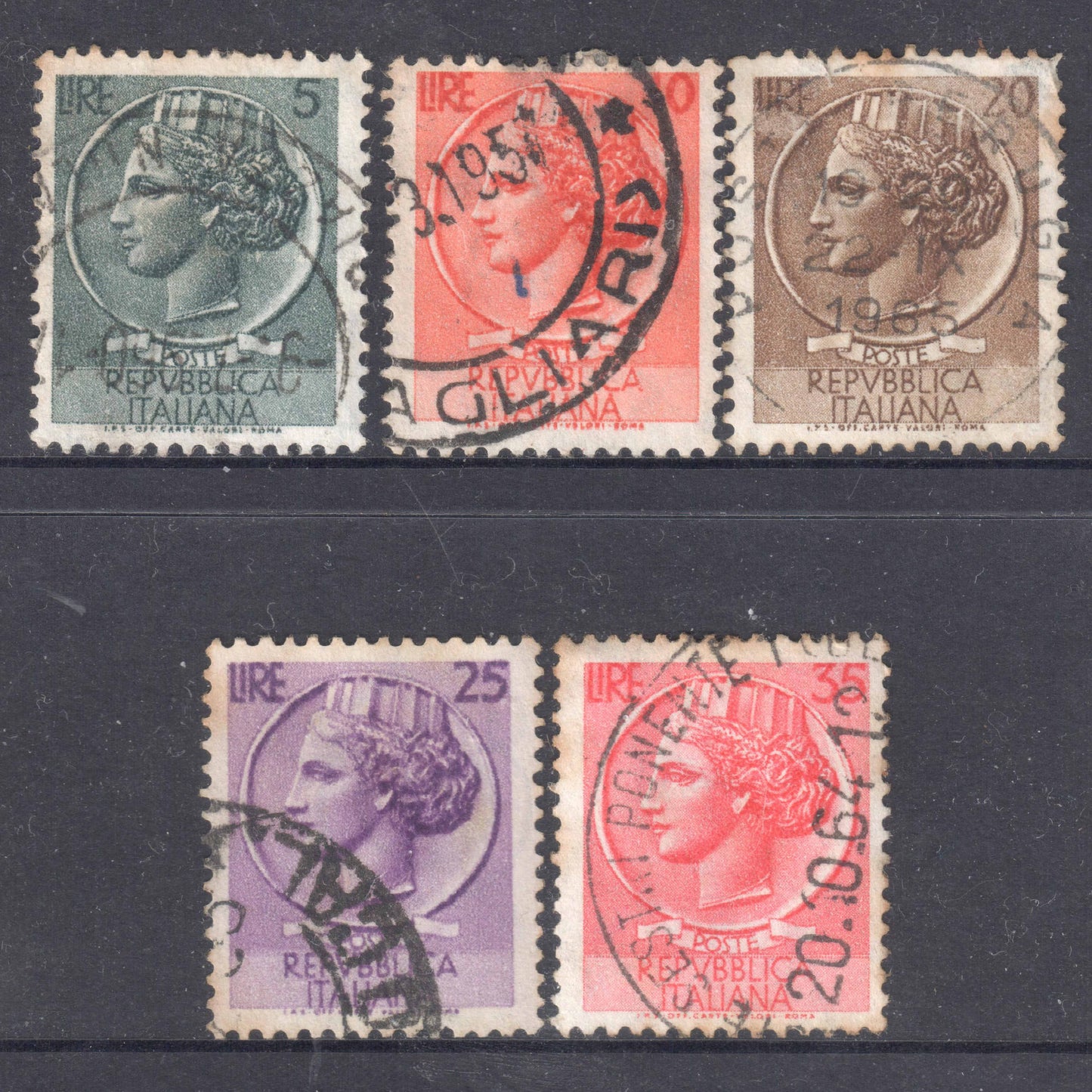 Italy Italia 1953 Syracusan Coin Stamp Group of 5 - Perfin:14. Used & postmarked stamp group of 5. Please view images as all images are of the actual item.