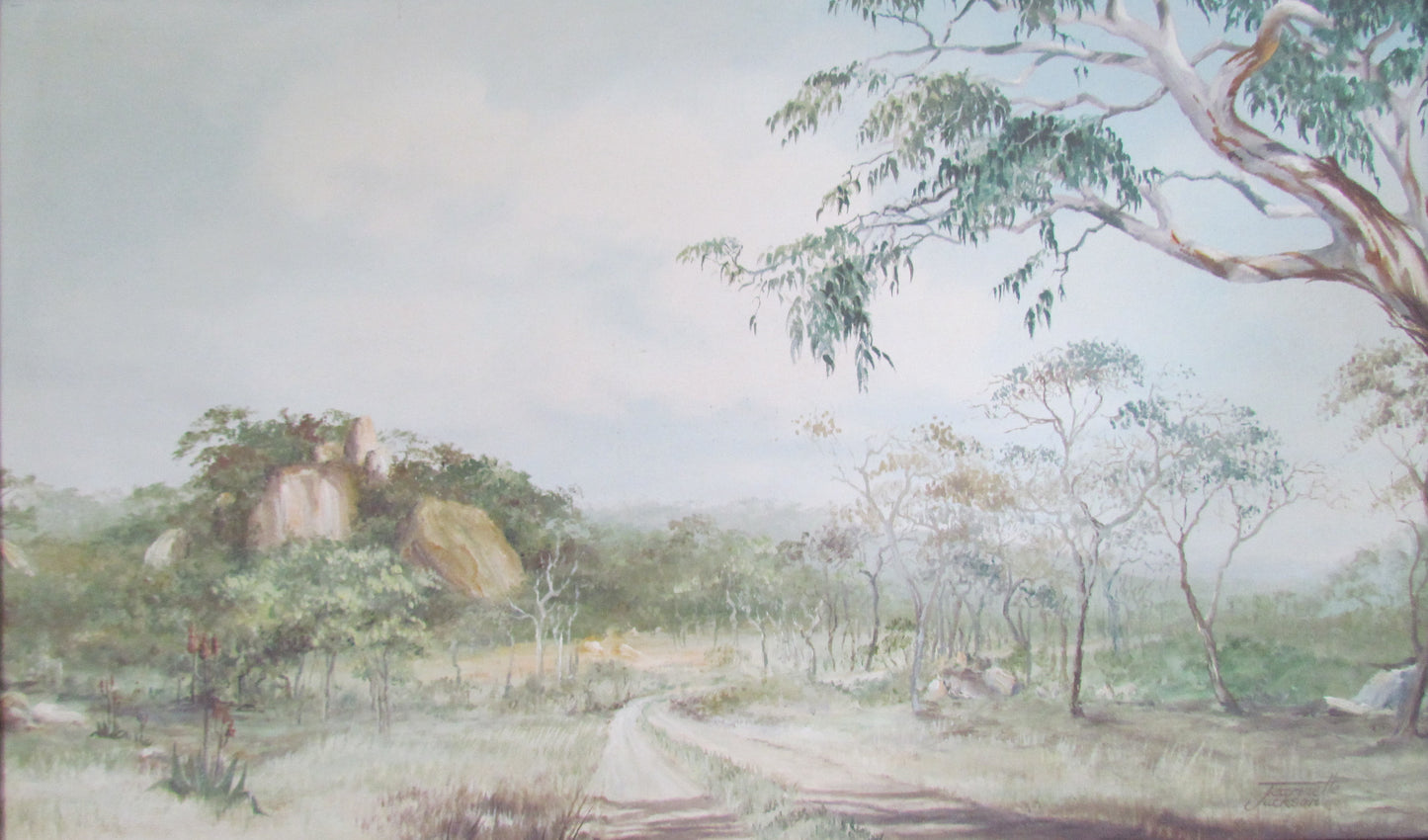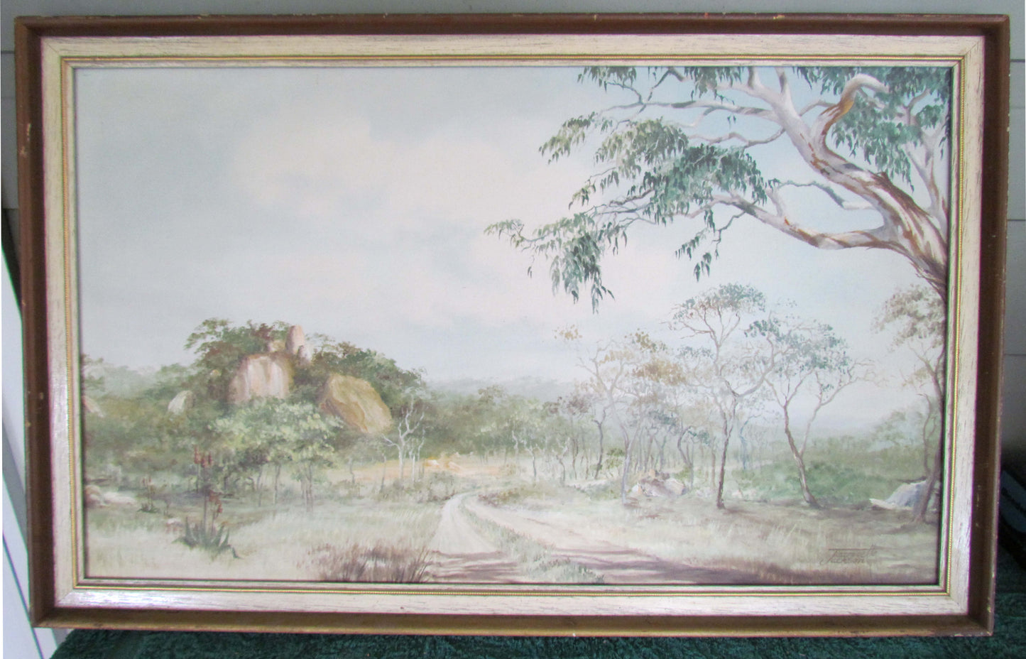 J Jackson South African Artist Oil On Board Of A Landscape Near Bulawayo. Signed Lower Right. Please view images as all images are of the actual item.