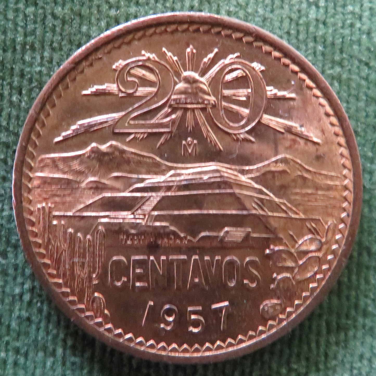 Mexican 1957 20 Centavos Coin - EF. A lightly circulated coin. A self-graded coin using the table set out in the link (Click Here). Please view the images as all images are of the actual item.
