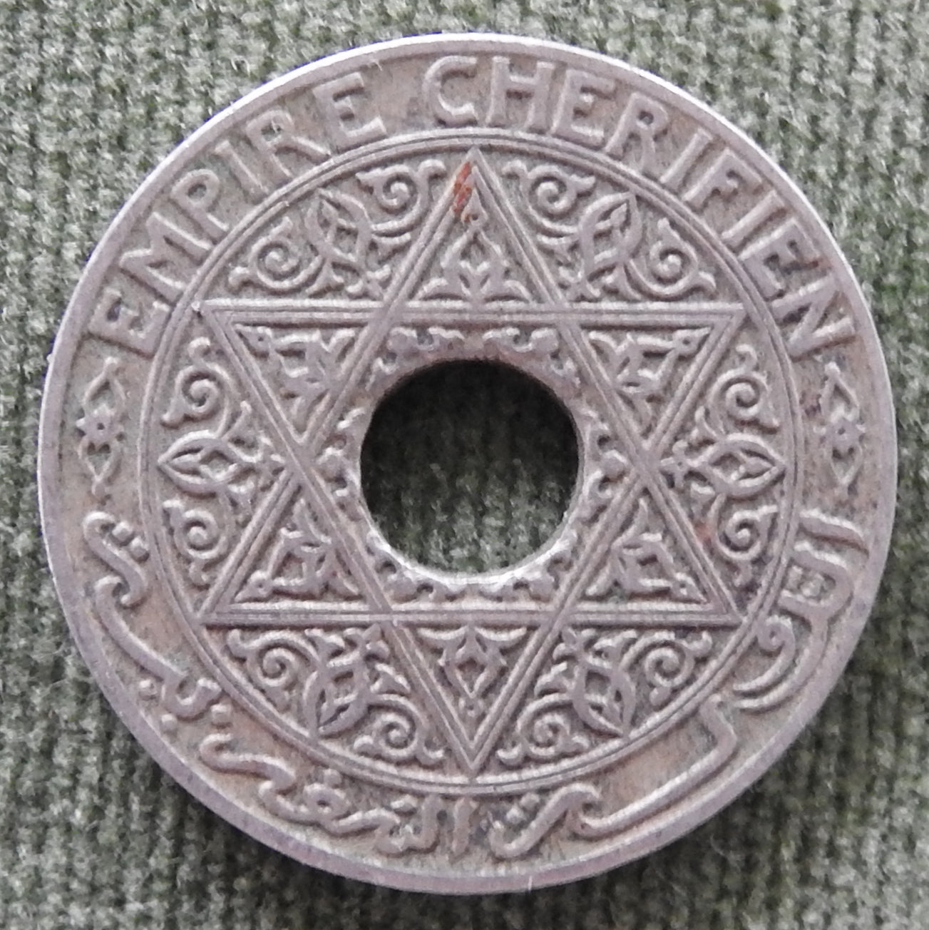 Morocco 1924 25 Centimes Sultan Yusef Coin Five-Pointed Star With Lightning Bolt