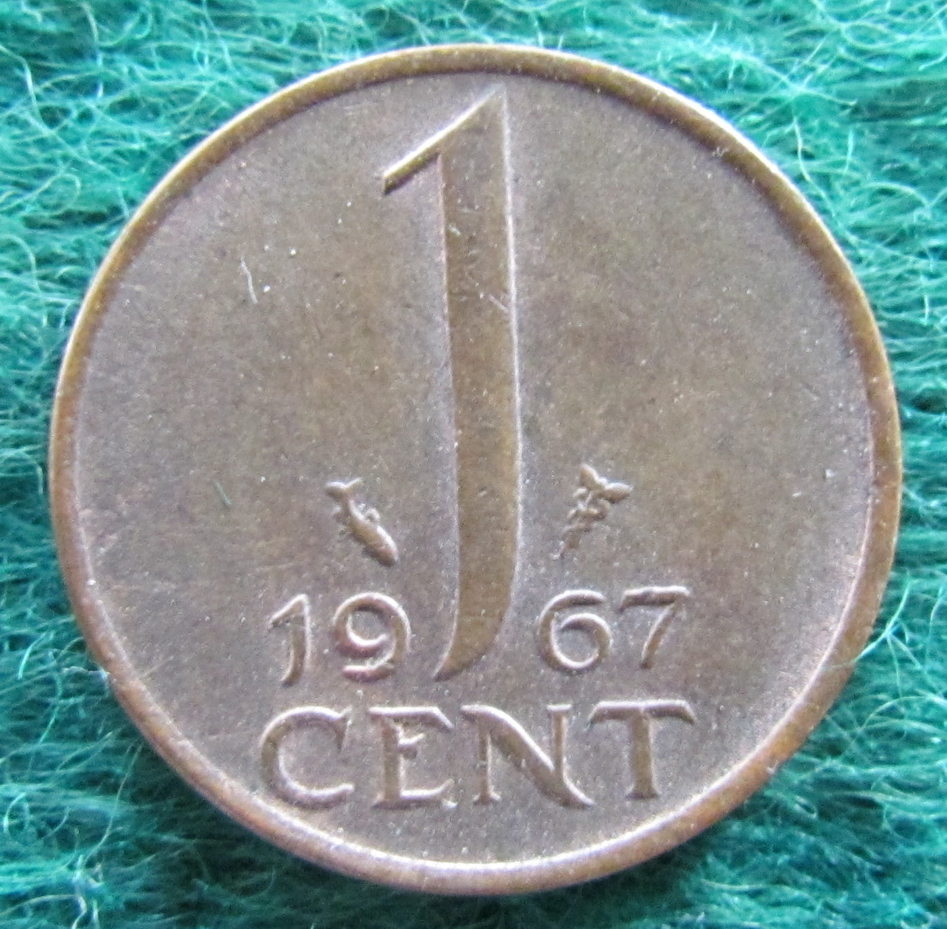 Netherlands 1967 1 Cent Juliana Coin - Circulated. A good coin showing wear consistent with light handling in circulation. Please view images as all images are of the actual item.